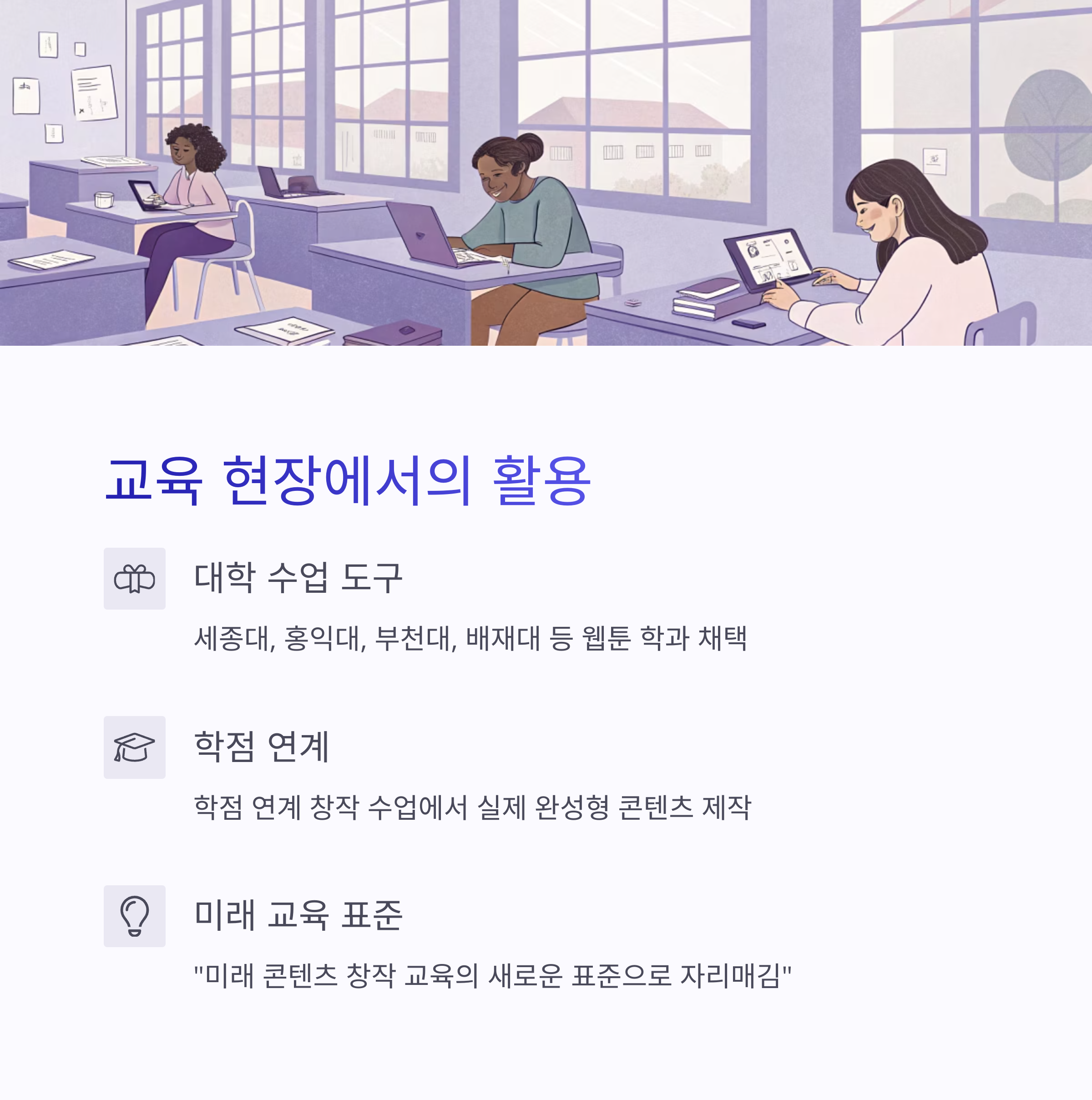 웹툰 관련 학과의 수업 도구로도 채택되고 있습니다.