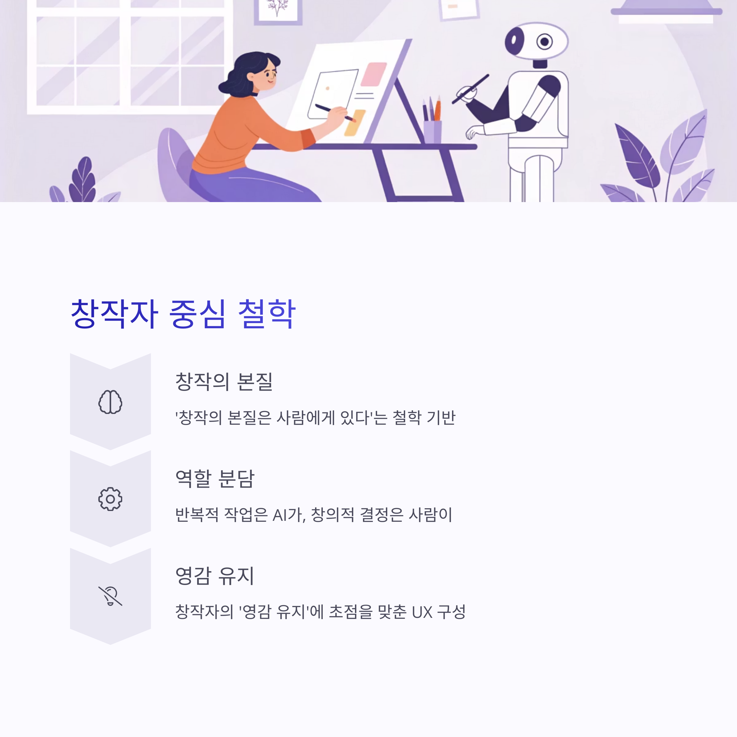 - 창작자의 ‘영감 유지’에 초점을 맞춘 UX 구성