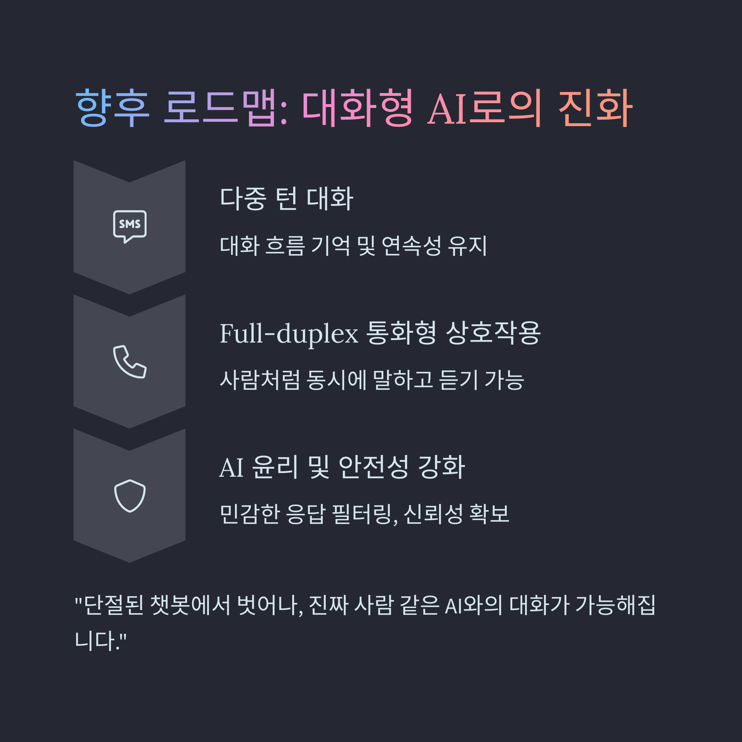 "단절된 챗봇에서 벗어나, 진짜 사람 같은 AI와의 대화가 가능해집니다."