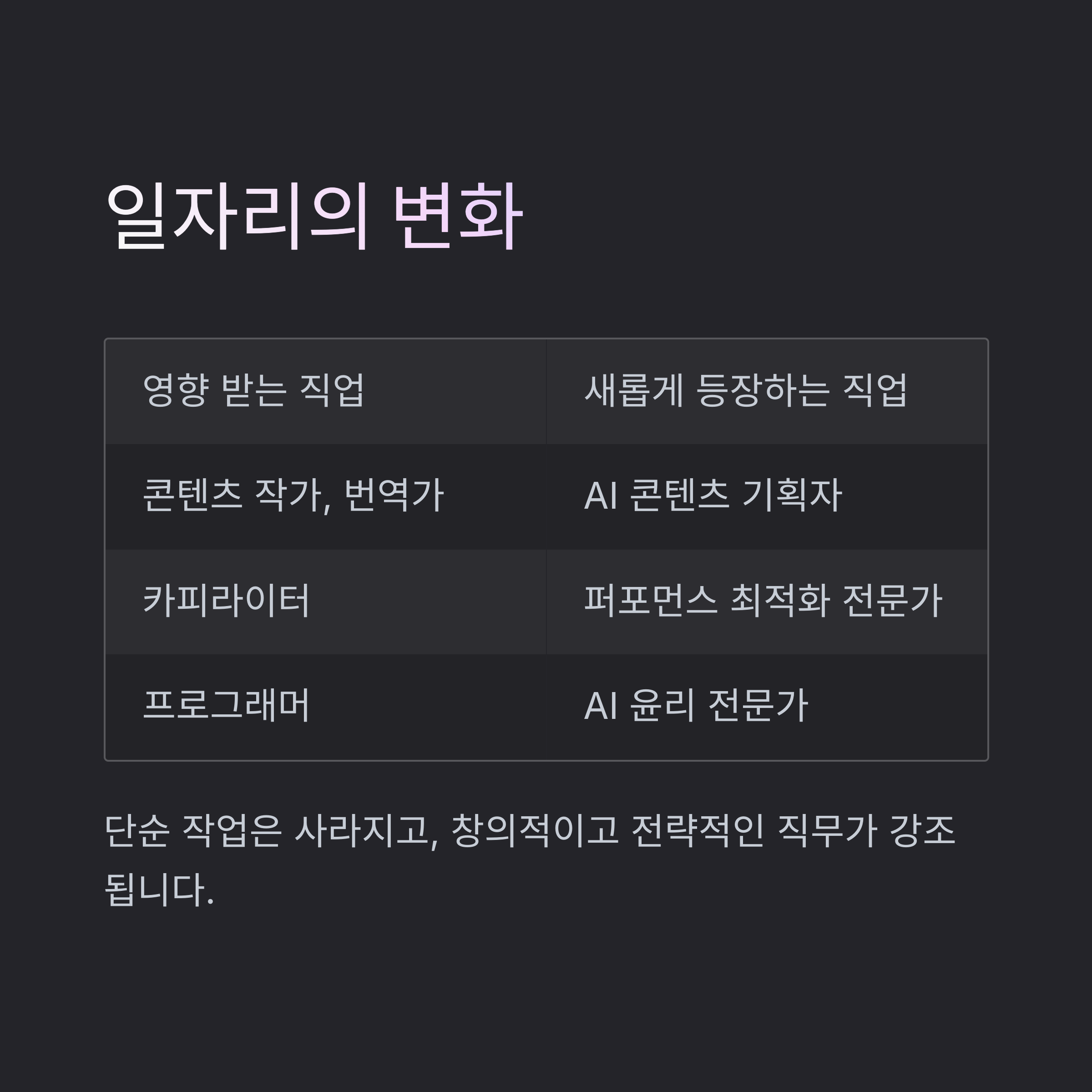 "단순 작업은 사라지고, 창의적이고 전략적인 직무가 강조됩니다."