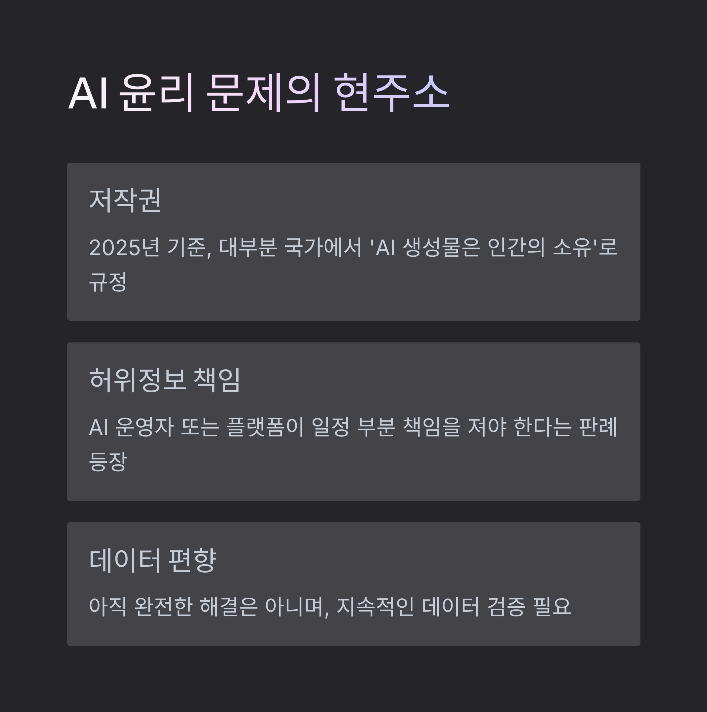 A. 2025년 기준, 대부분 국가에서 'AI 생성물은 인간의 소유'로 규정하고 있습니다.