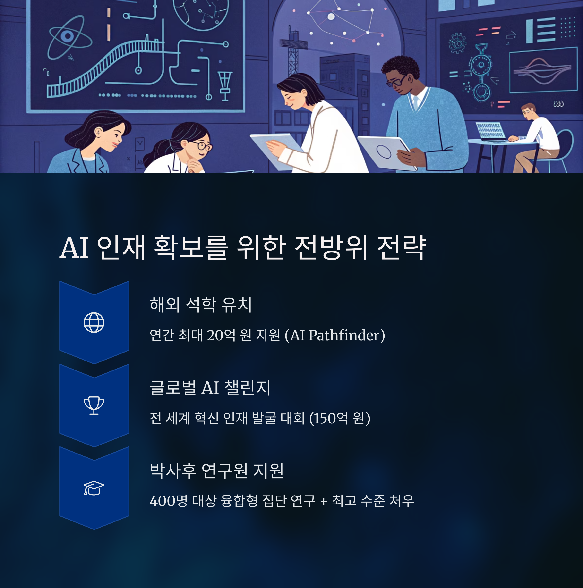 | AI Pathfinder | 해외 석학 유치 시 연간 최대 20억 원 | 개별 연구실 중심 지원 |
