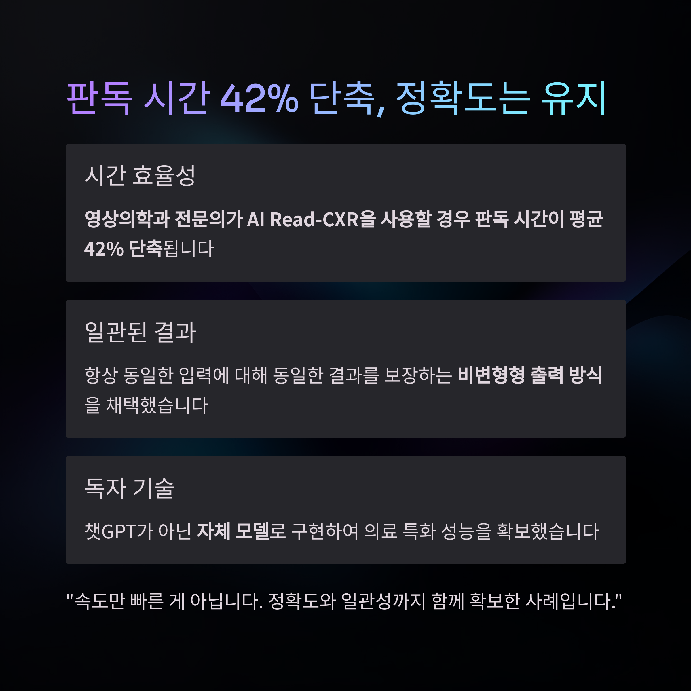 - 진단 속도 + 판독의 일관성 확보에 집중
