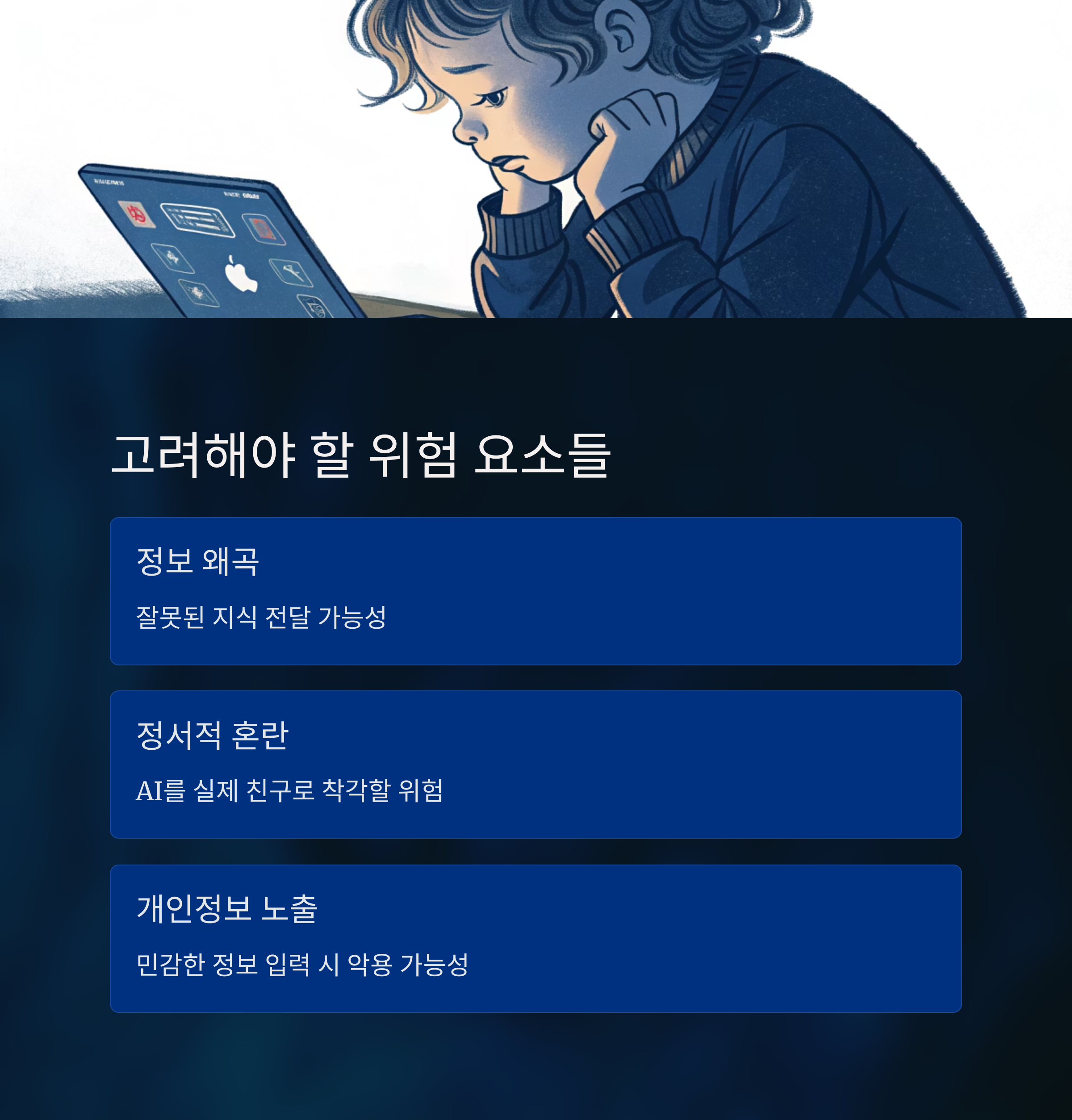 | 정서적 혼란 | AI를 실제 친구로 착각할 위험 |