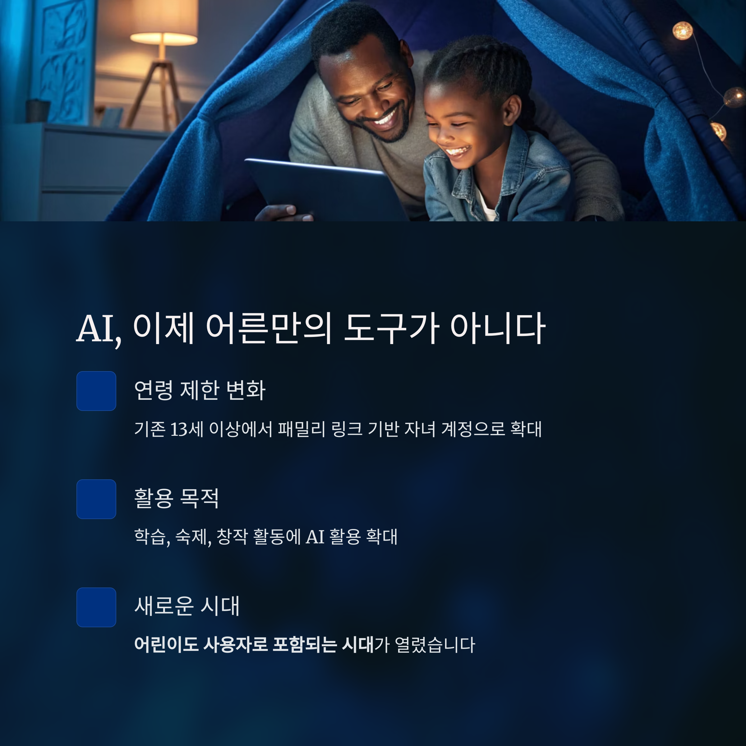 - 개방 대상: 패밀리 링크(Family Link) 기반 자녀 계정