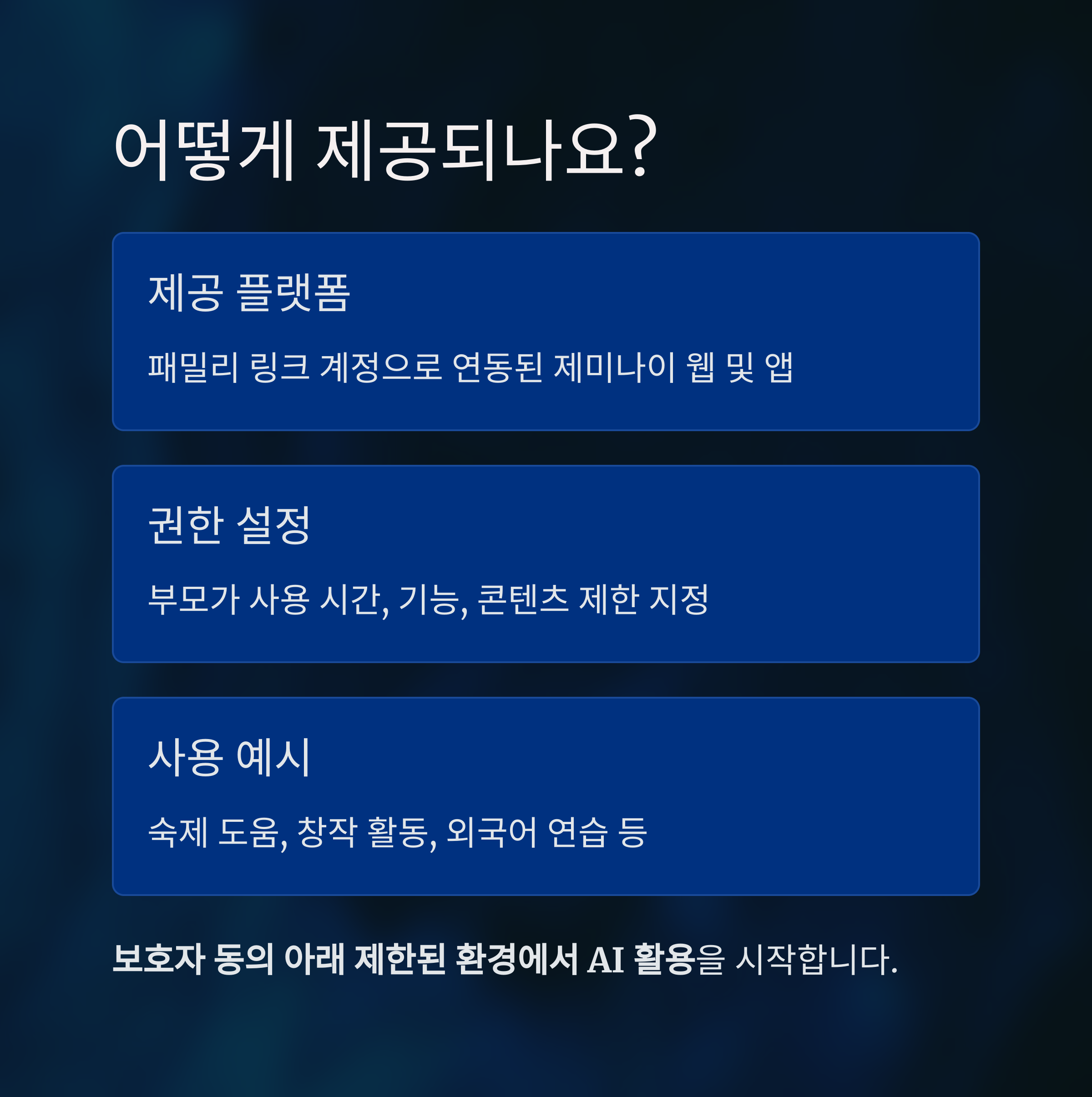 | 제공 플랫폼 | 패밀리 링크 계정으로 연동된 제미나이 웹 및 앱 |
