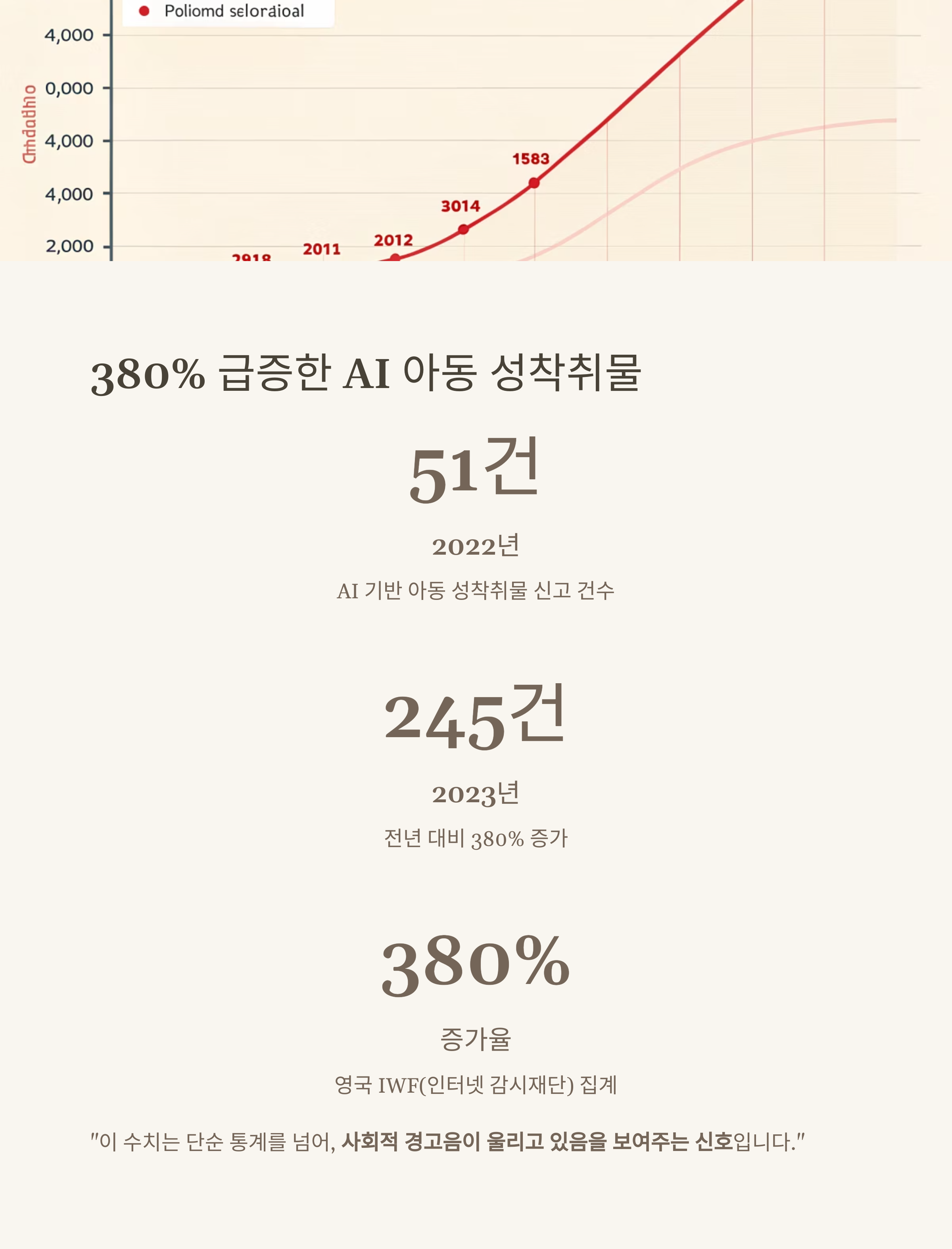 AI 기반 아동 성착취물 신고가 380% 급증했습니다.