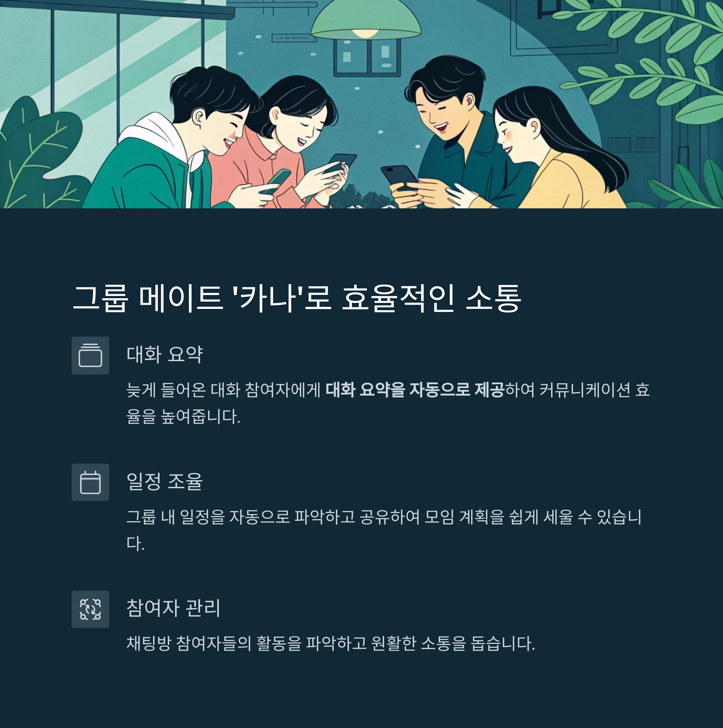 개인 메이트 ‘나나’와 그룹 메이트 ‘카나’, AI가 모두 챙긴다