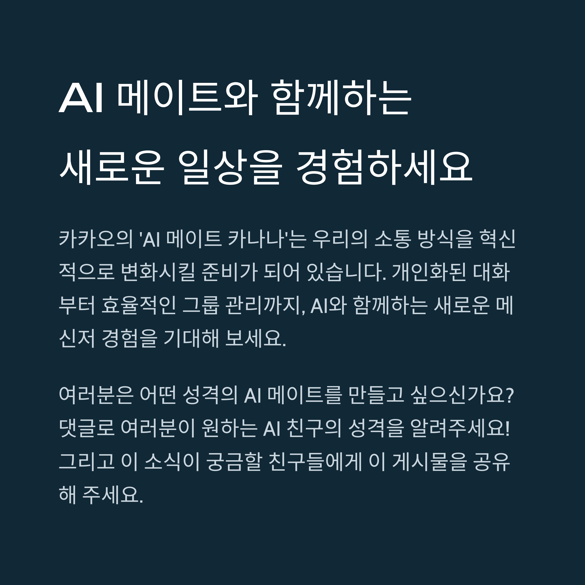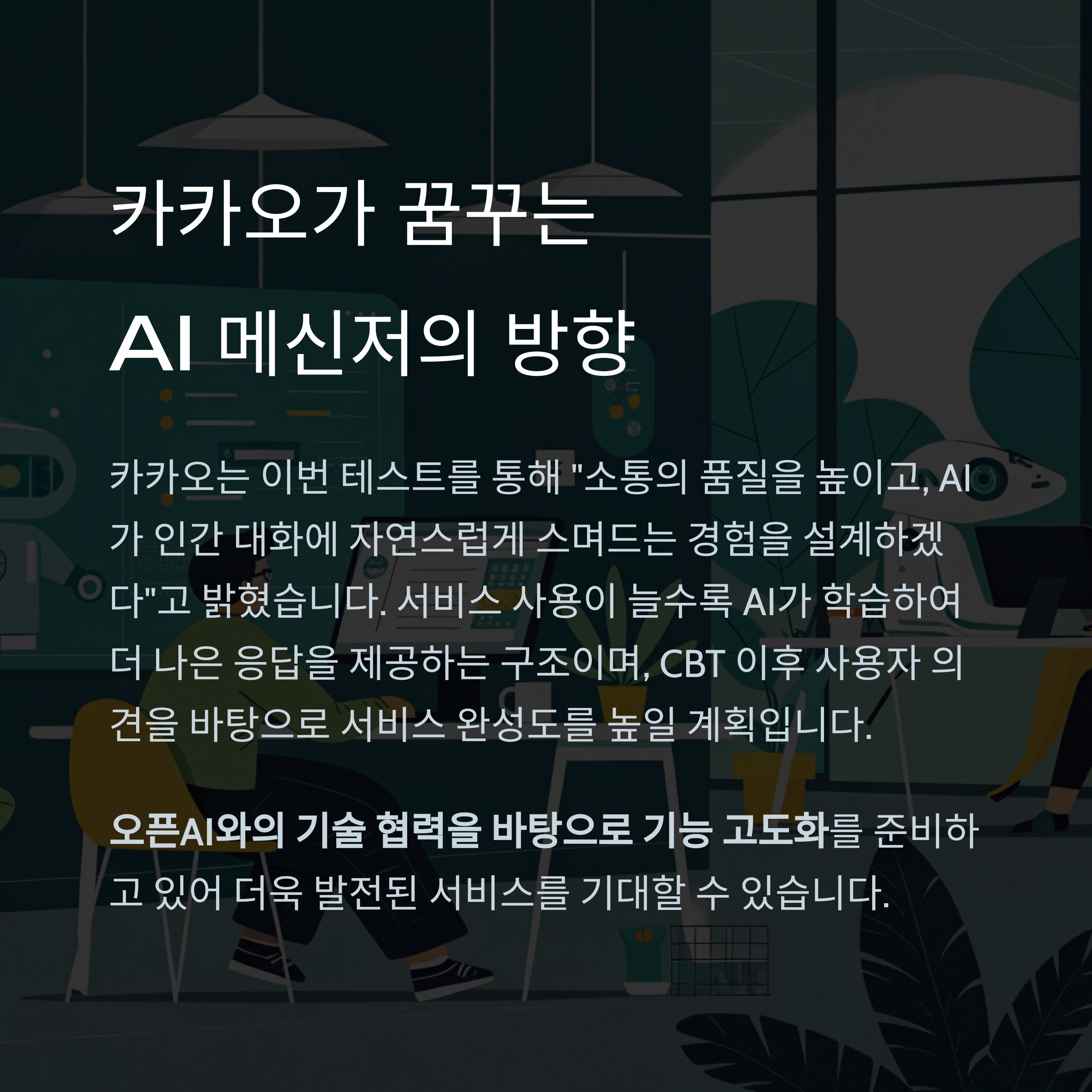 이제 메신저 속 AI는 단순한 도우미가 아닌, 일상 대화의 ‘주체’로 진화하고 있습니다.