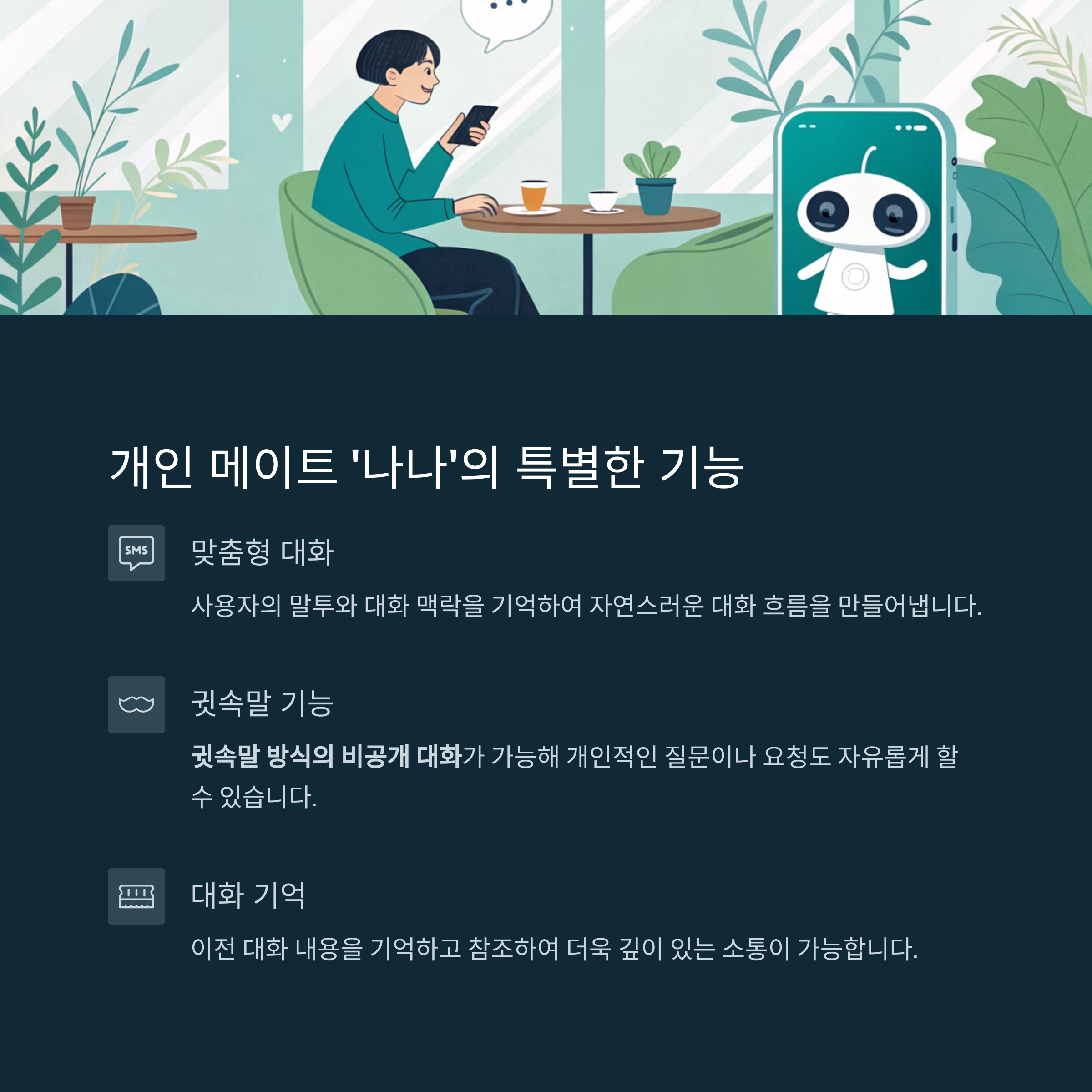 개인 대화를 전담하는 ‘나나’는 사용자의 말투와 맥락을 기억해