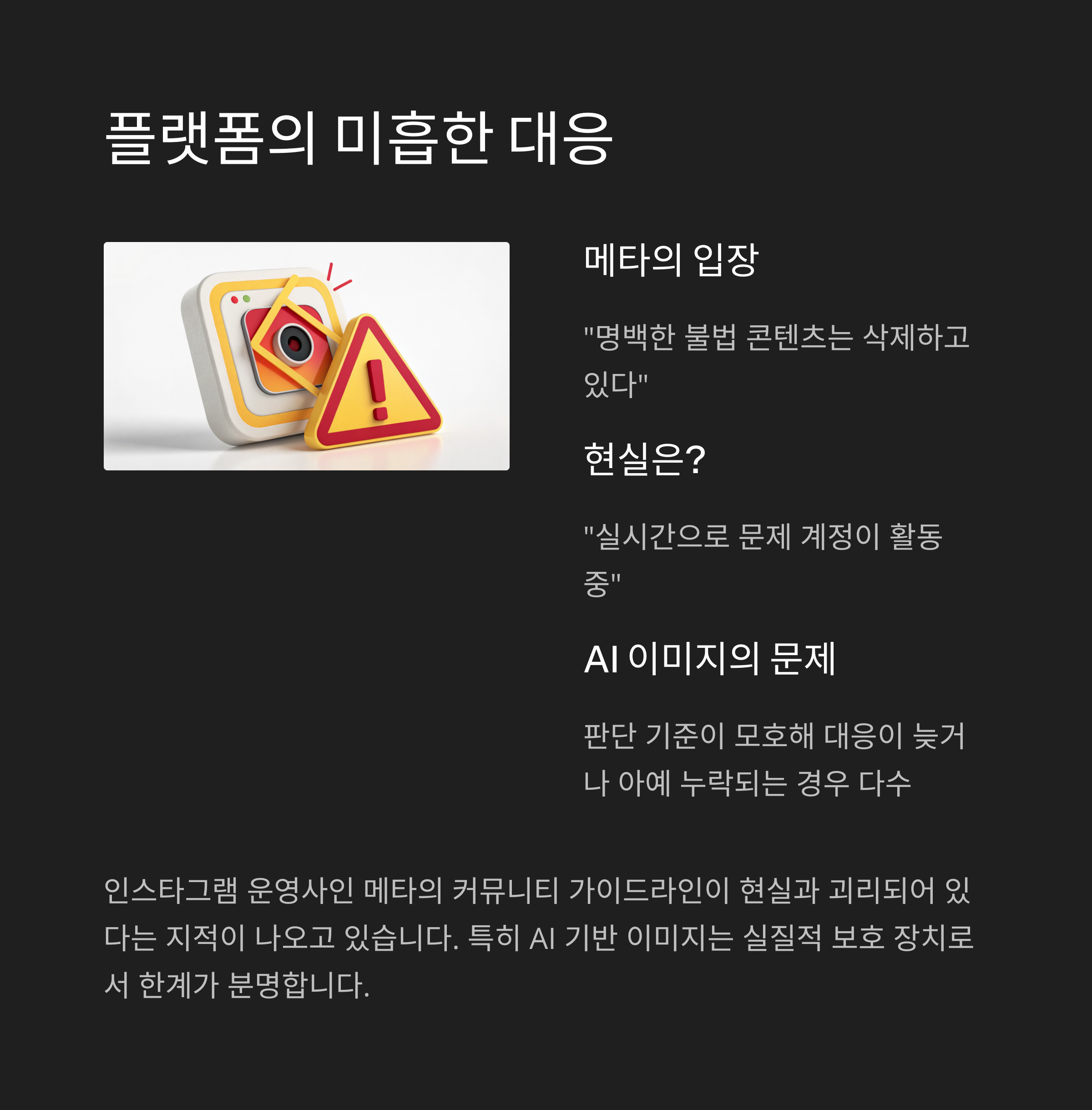 | 플랫폼 비판 | “신고해도 계속 올라온다. 대응이 없다” |