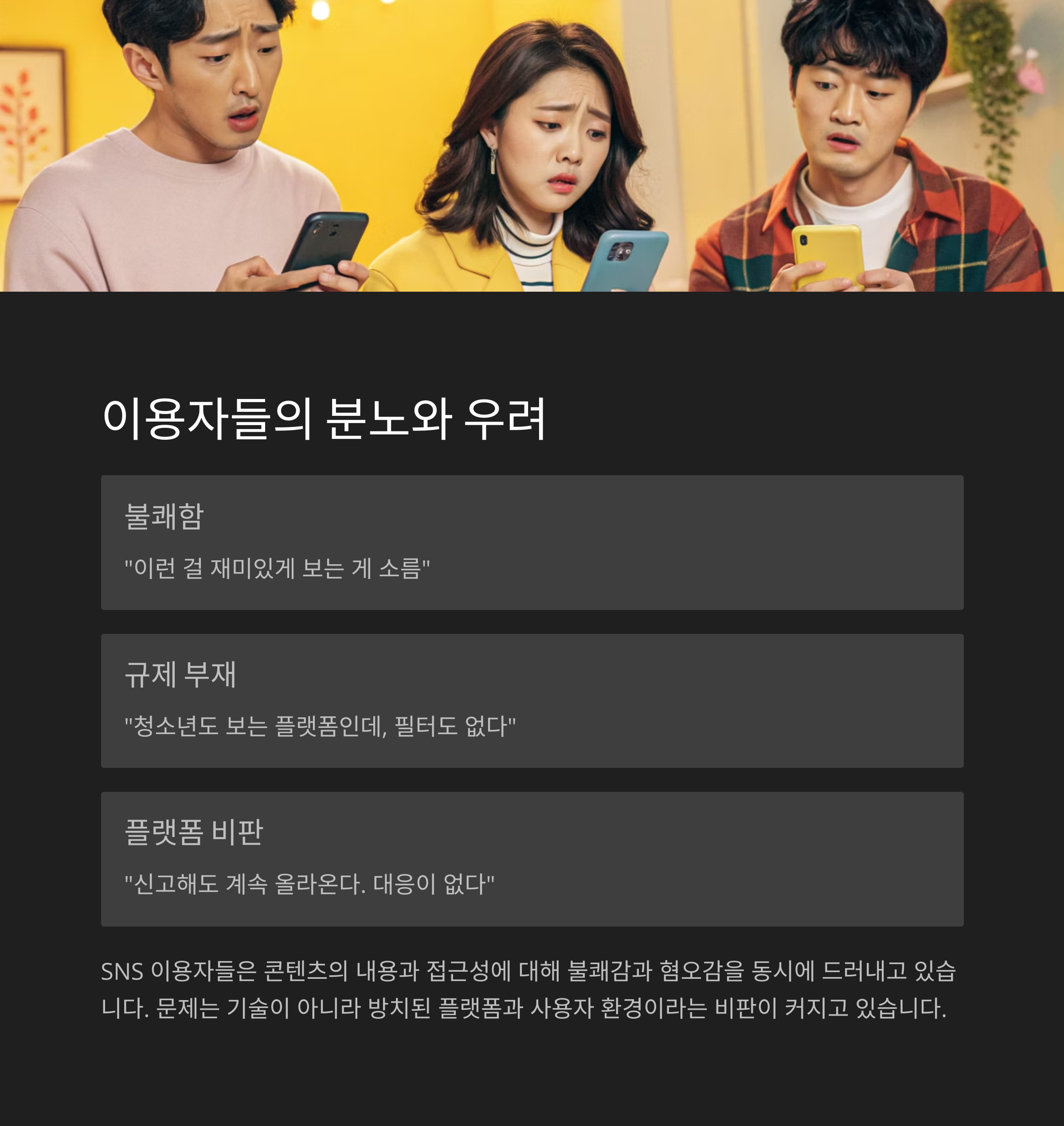 | 규제 부재 | “청소년도 보는 플랫폼인데, 필터도 없다” |