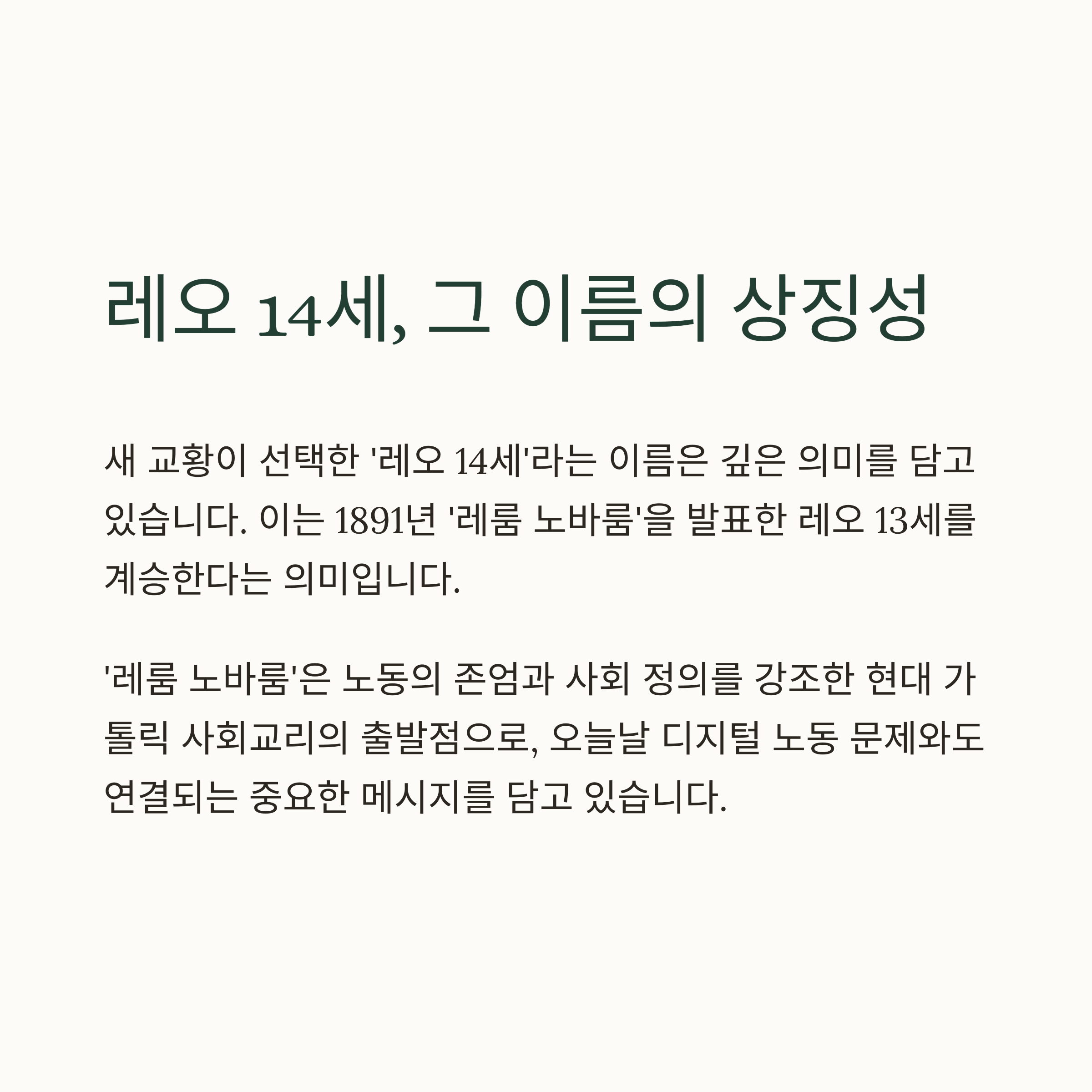 1891년 ‘레룸 노바룸’을 발표한 레오 13세를 계승한다는 의미를 담고 있습니다.