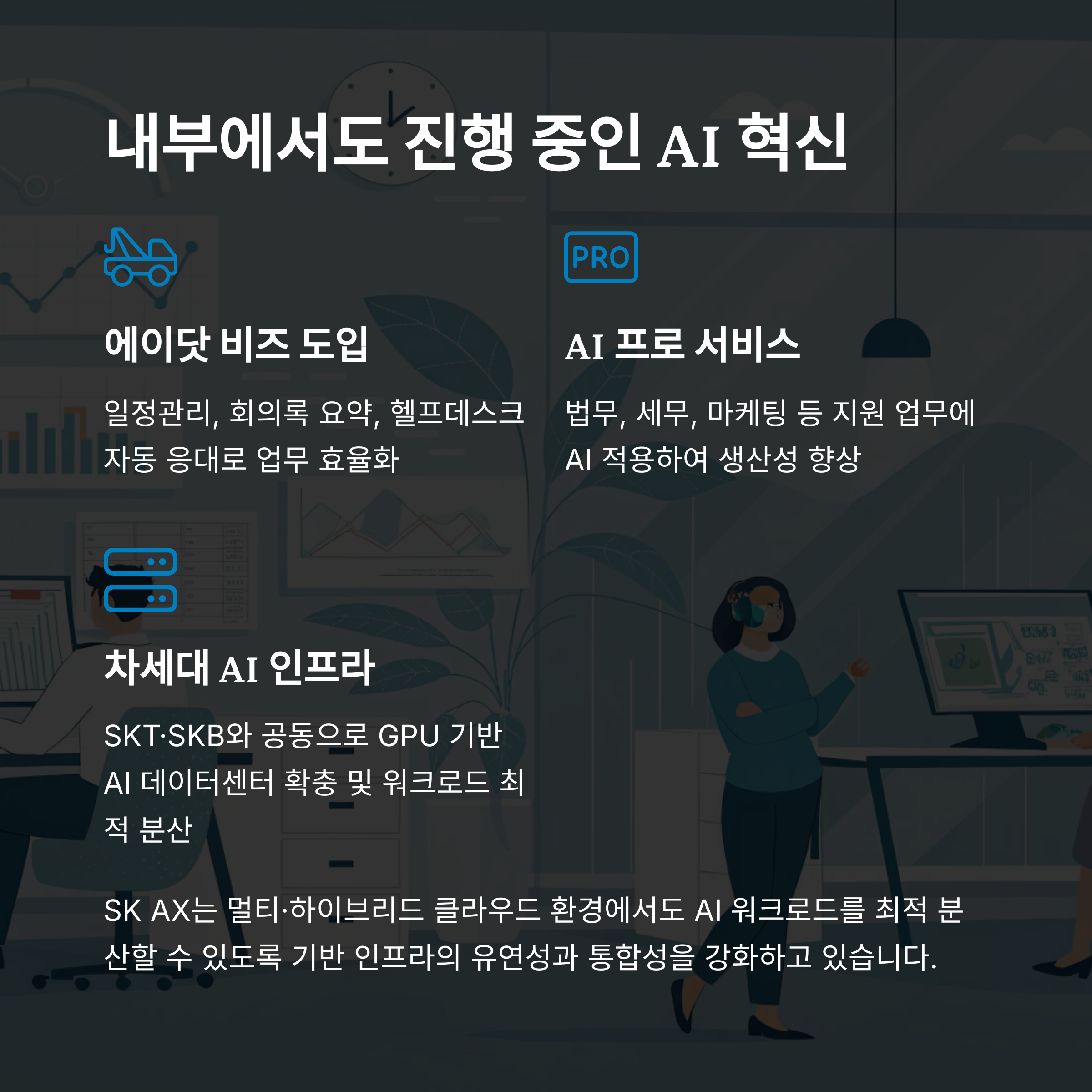 - 차세대 AI 인프라 구축: SKT·SKB와 공동으로 GPU 기반 AI 데이터센터 확충