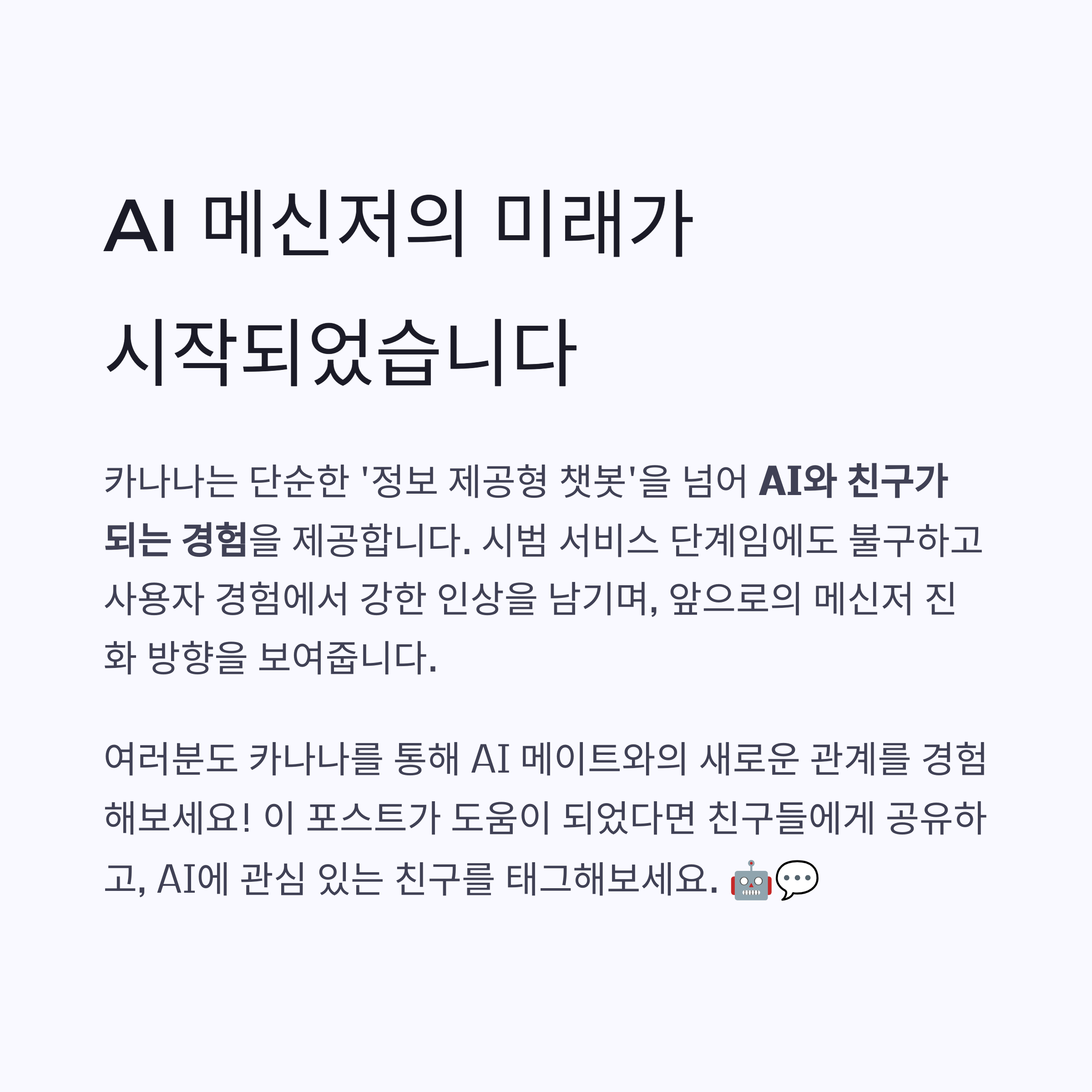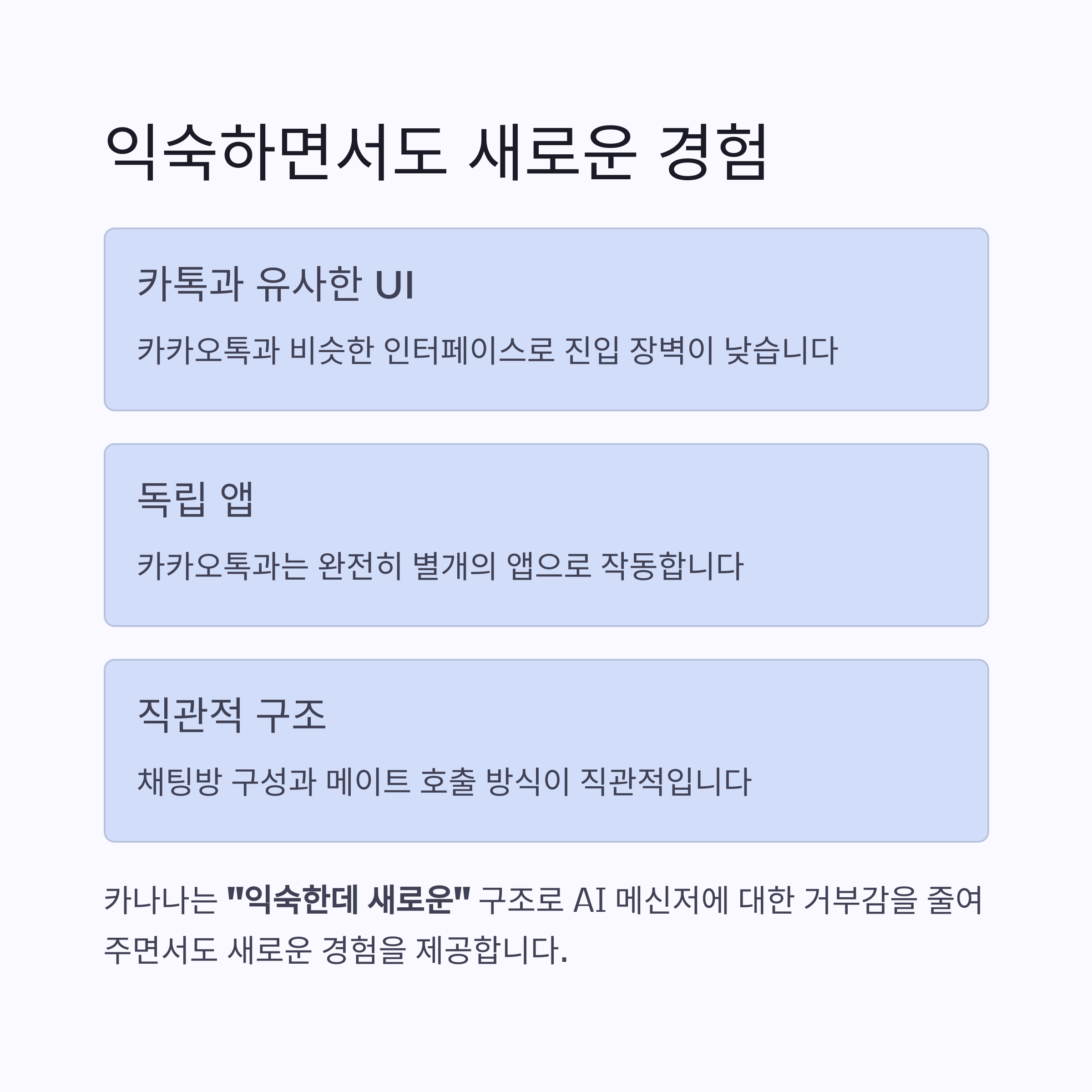 "익숙한데 새로운" 구조가 AI 메신저에 대한 거부감을 줄여줍니다.