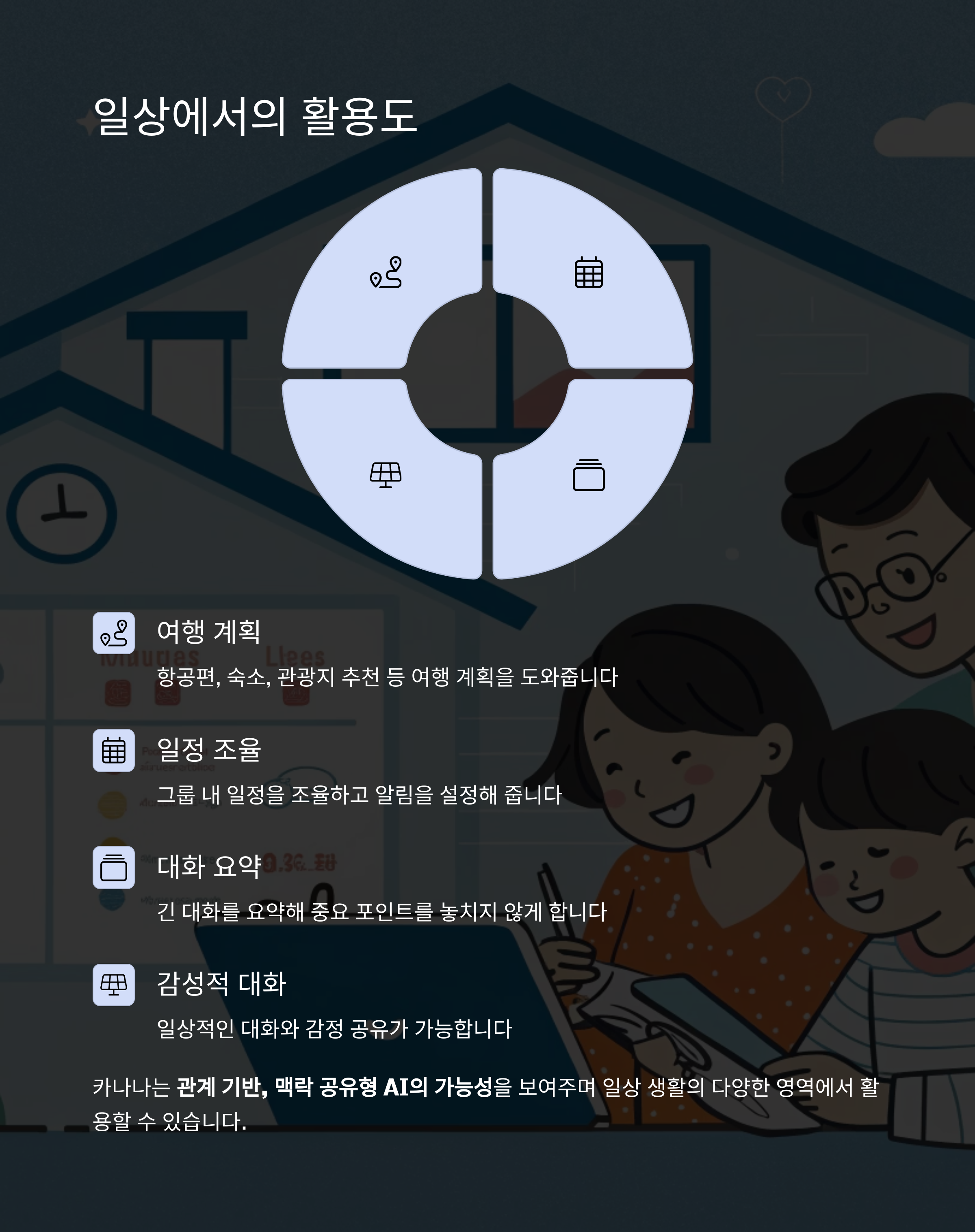 여행 계획, 일정 조율, 대화 요약 등 일상 활용도는 높으며,