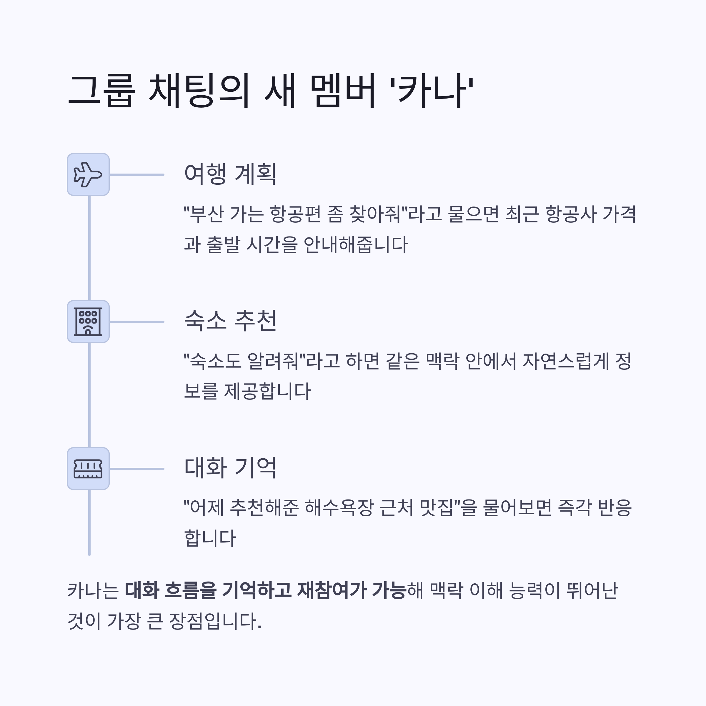 특히 카나는 대화 흐름을 기억하고 재참여가 가능해