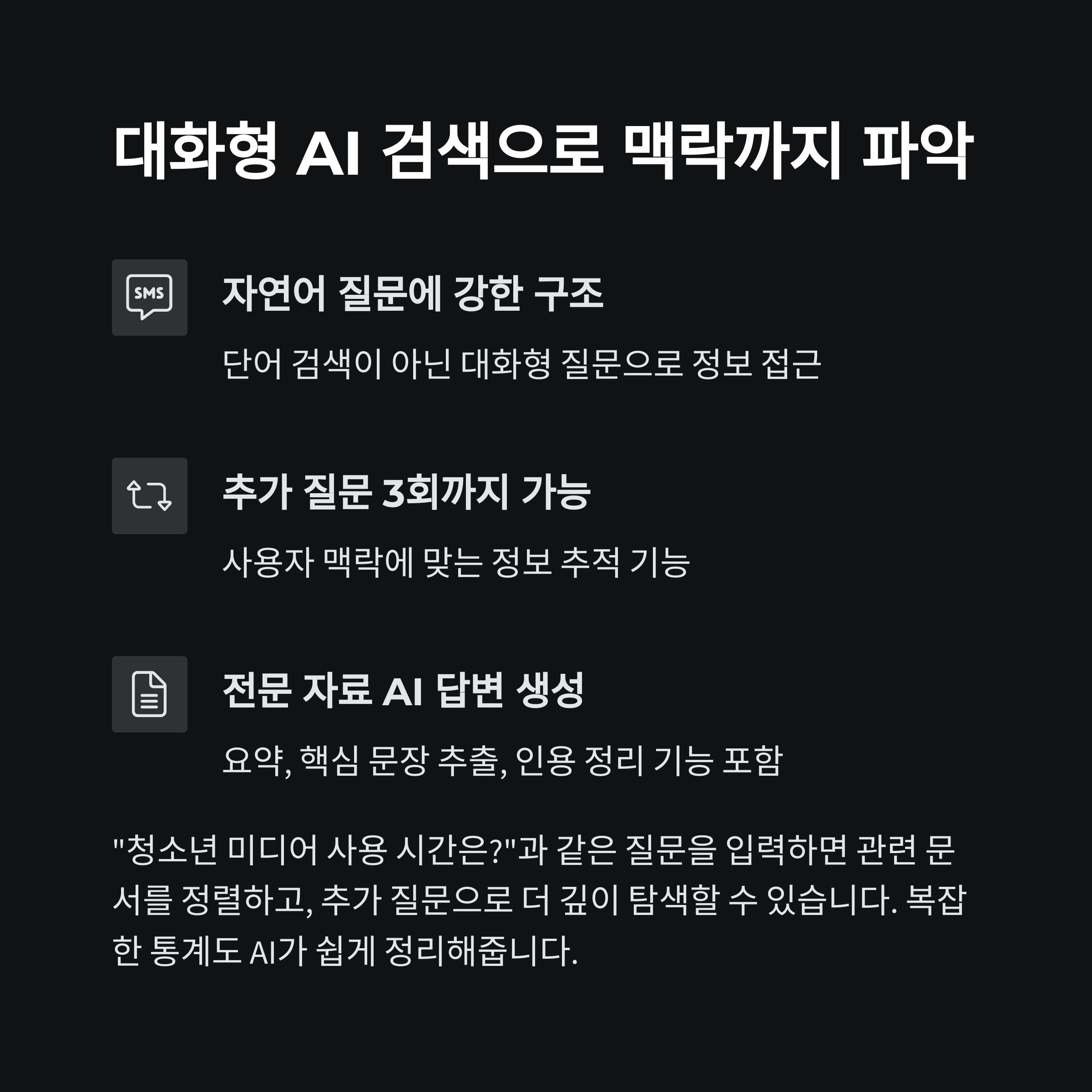 예를 들어 “청소년 미디어 사용 시간은?”이라고 입력하면