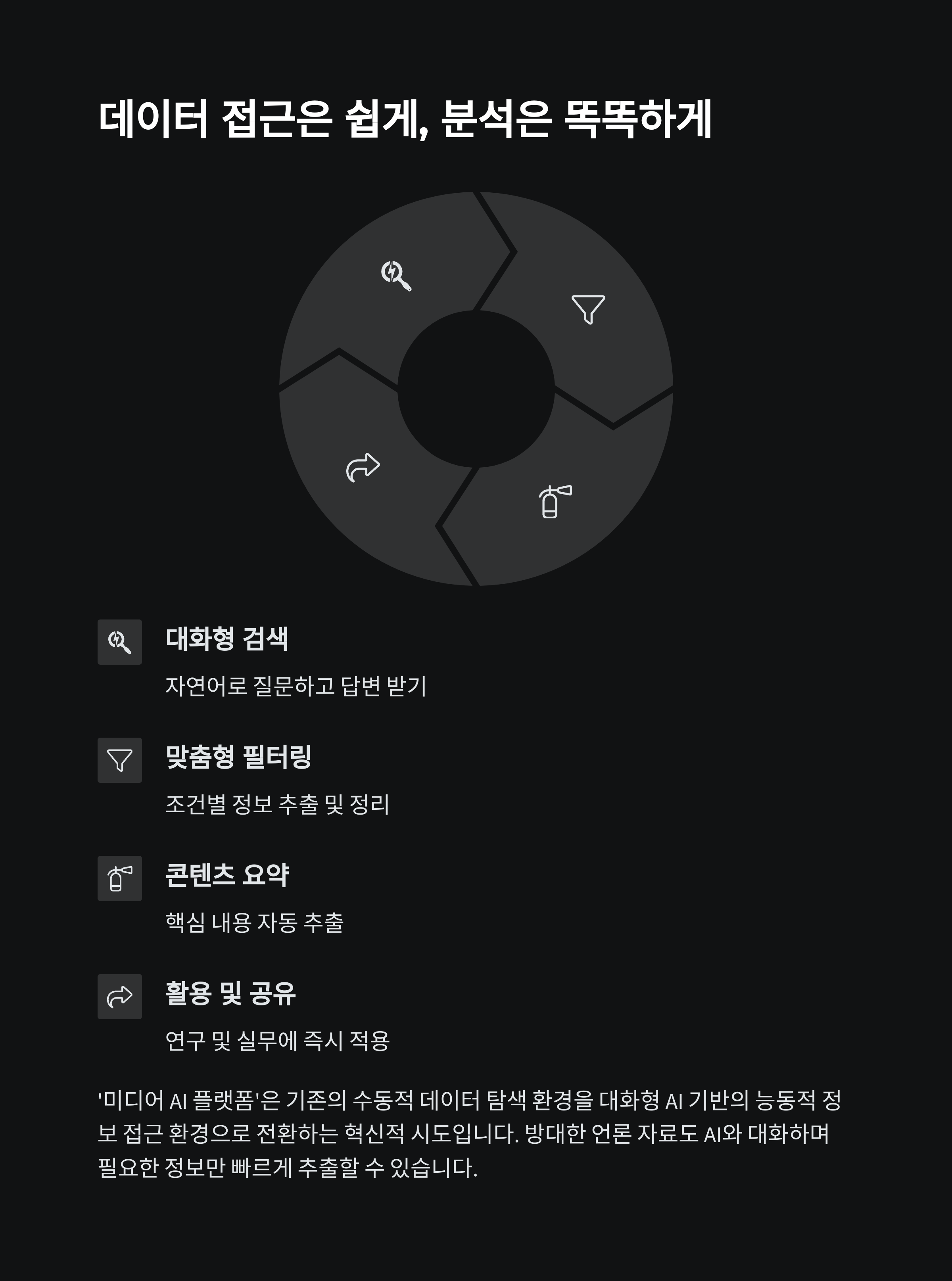 이제는 방대한 언론 자료도 AI와 대화하며 필요한 정보만 빠르게 추출할 수 있는 시대입니다.