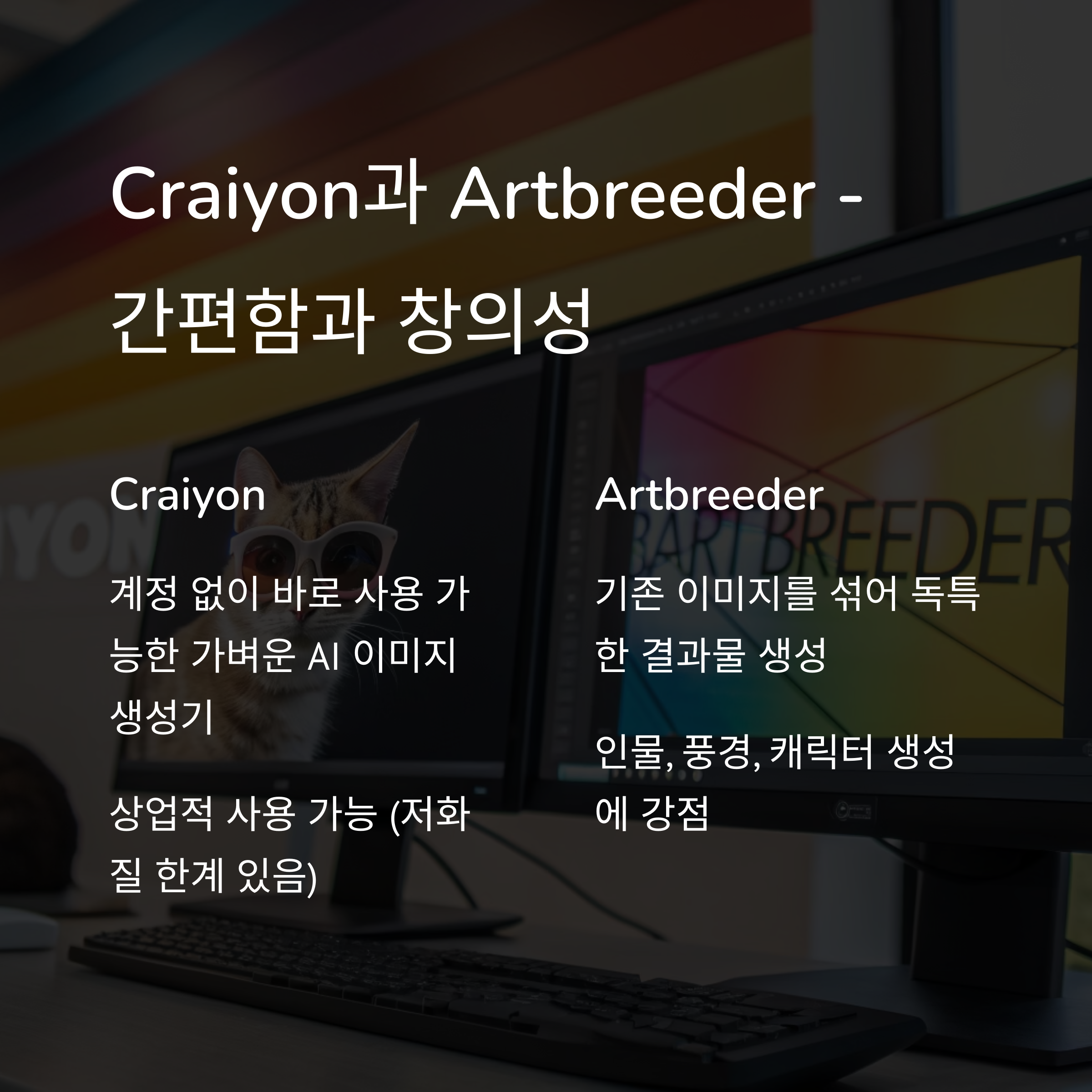 | Craiyon (구 DALL·E Mini) | 간편한 사용성 | 허용 (단, 품질 제한 있음) |
