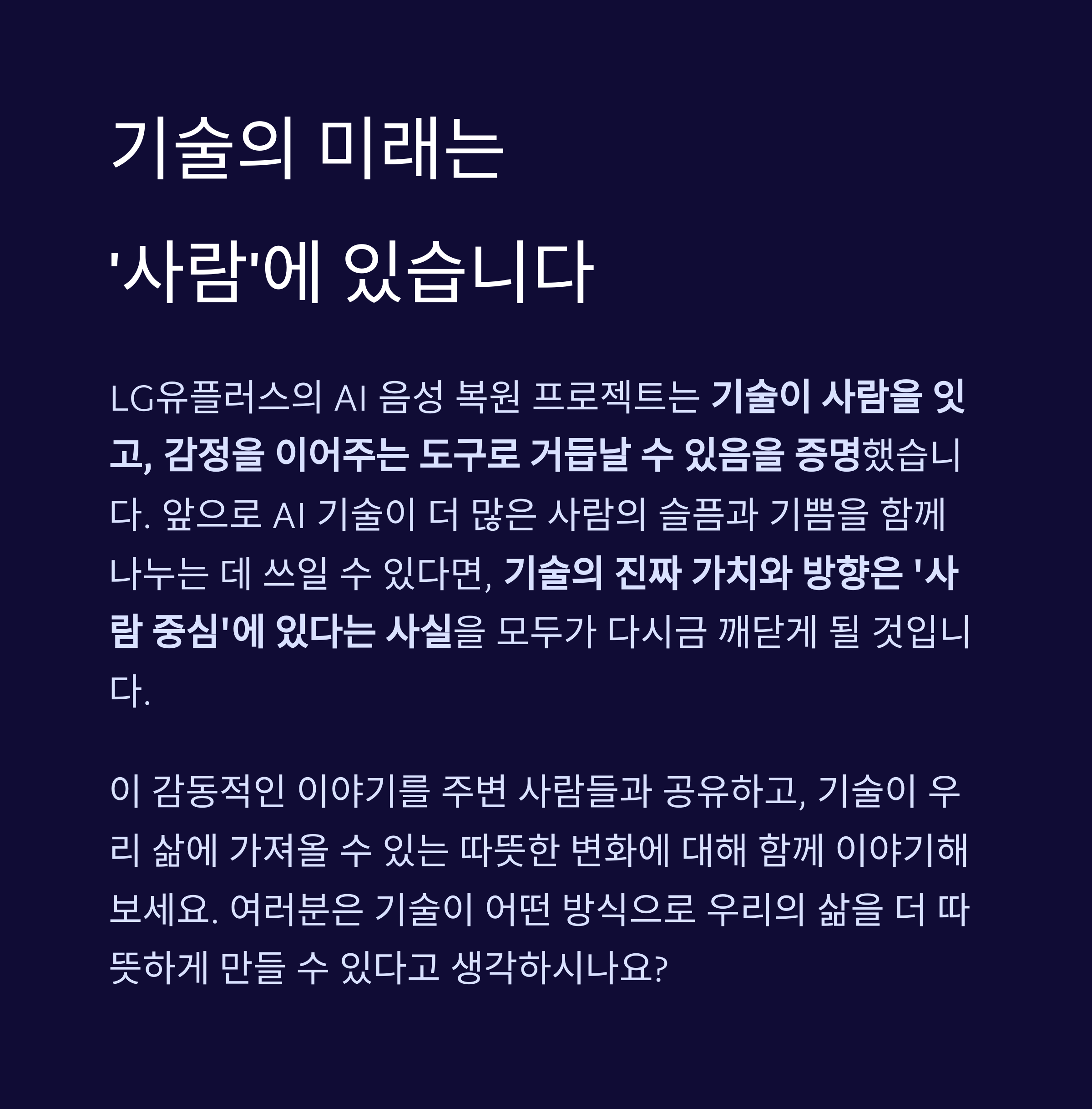 앞으로도 AI 기술로 유족과 사회에 따뜻한 위로를 전하는 활동을 지속할 예정입니다.