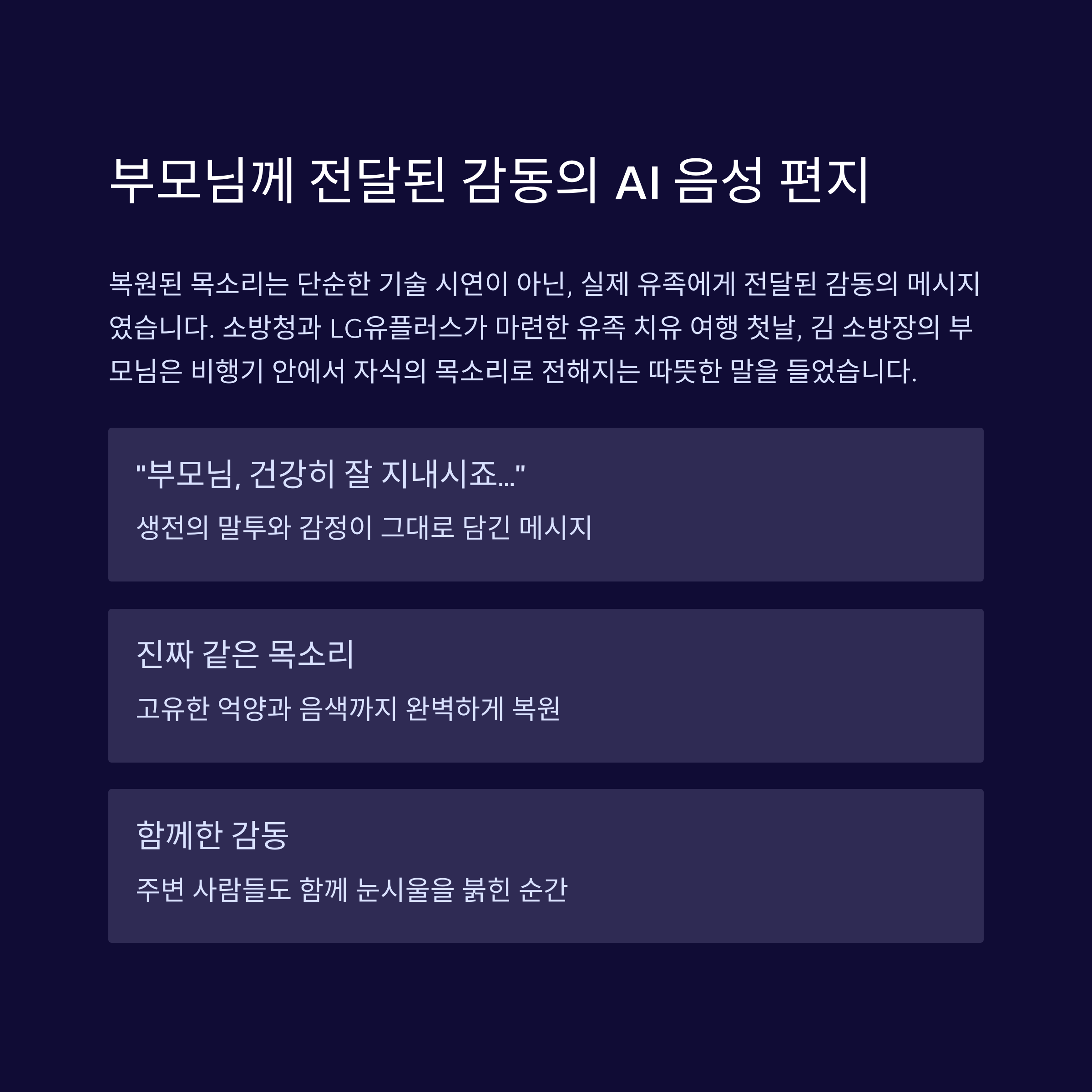 유족에게 ‘AI 음성 편지’를 전달하는 프로젝트로 큰 감동을 주고 있습니다.