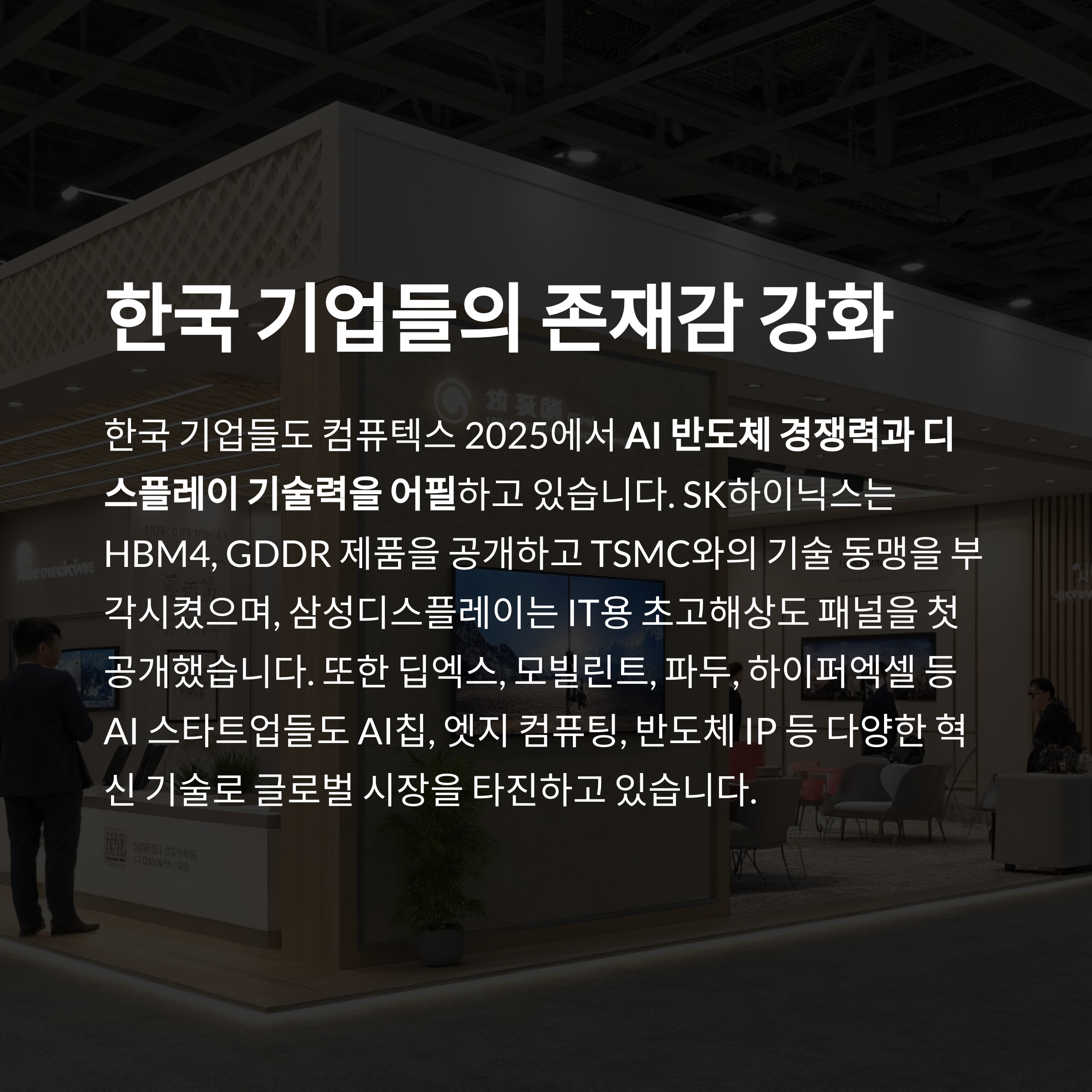 한국도 컴퓨텍스 2025에서 AI 반도체 경쟁력과 디스플레이 기술력을 어필하고 있습니다.