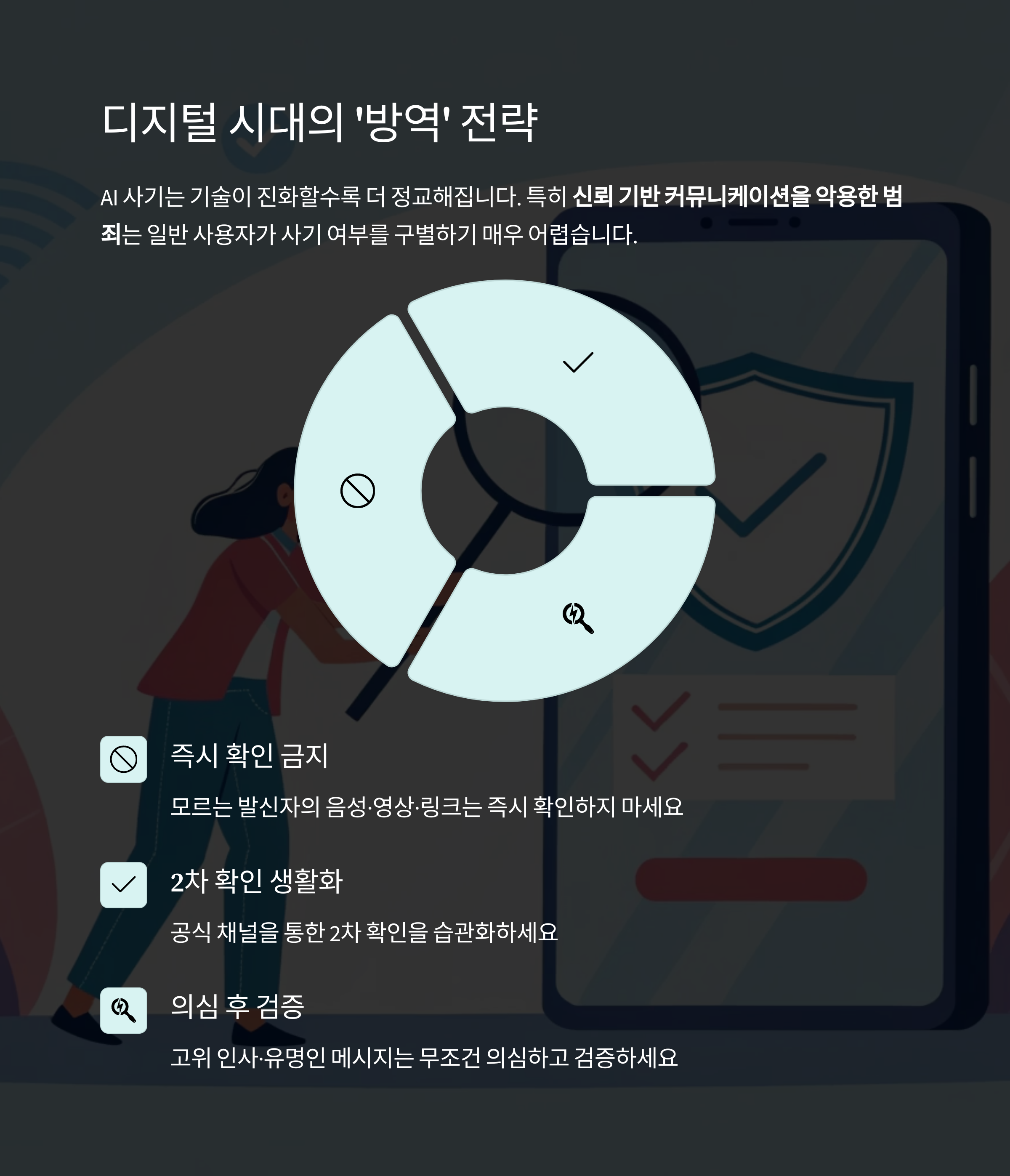 신뢰가 공격당하는 시대, 정보 확인이 곧 안전을 지키는 방패가 될 수 있습니다.