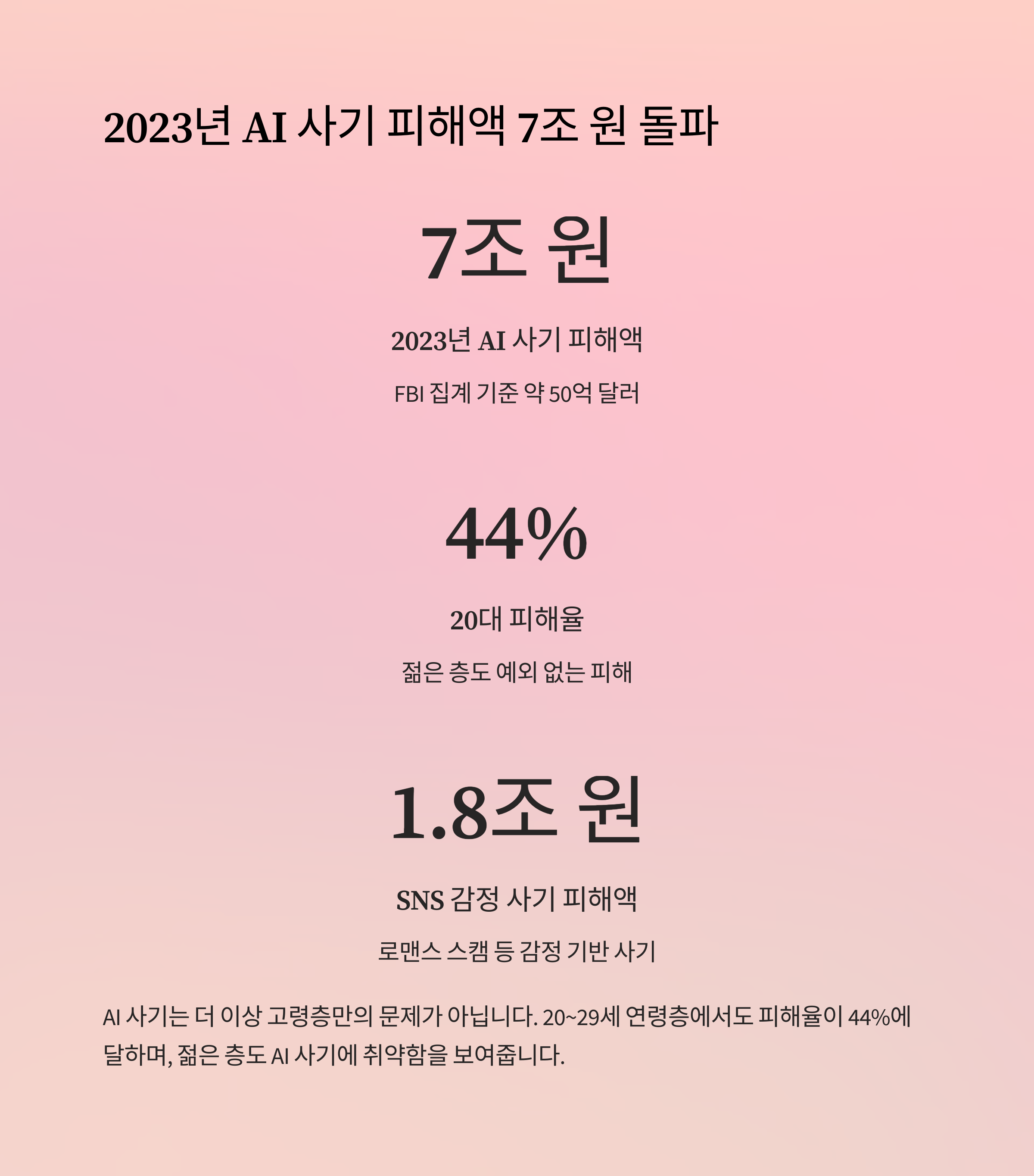 FBI는 2023년 한 해 동안 AI 관련 사기로만 약 50억 달러(약 7조 원)의 피해가 발생했다고 집계했습니다.