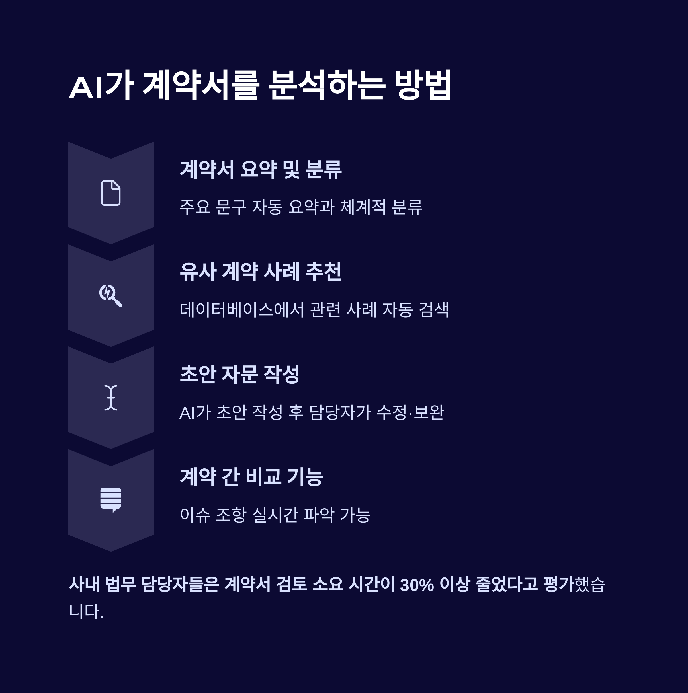사내 법무 담당자들은 계약서 검토 소요 시간이 30% 이상 줄었다고 평가했습니다.