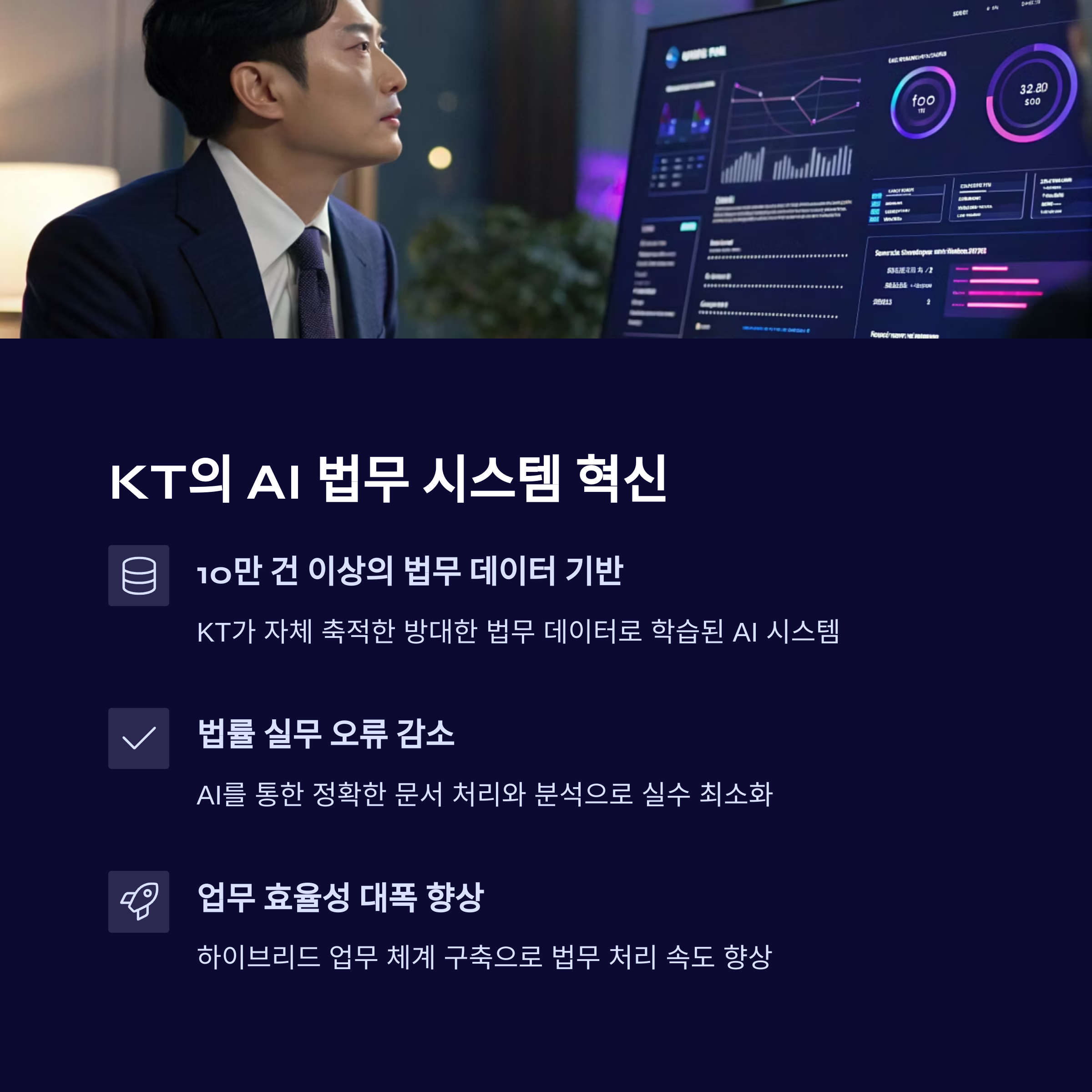 이번 시스템은 KT가 자체 축적한 10만 건 이상의 법무 데이터를 기반으로 학습된 AI가 중심이 되며,