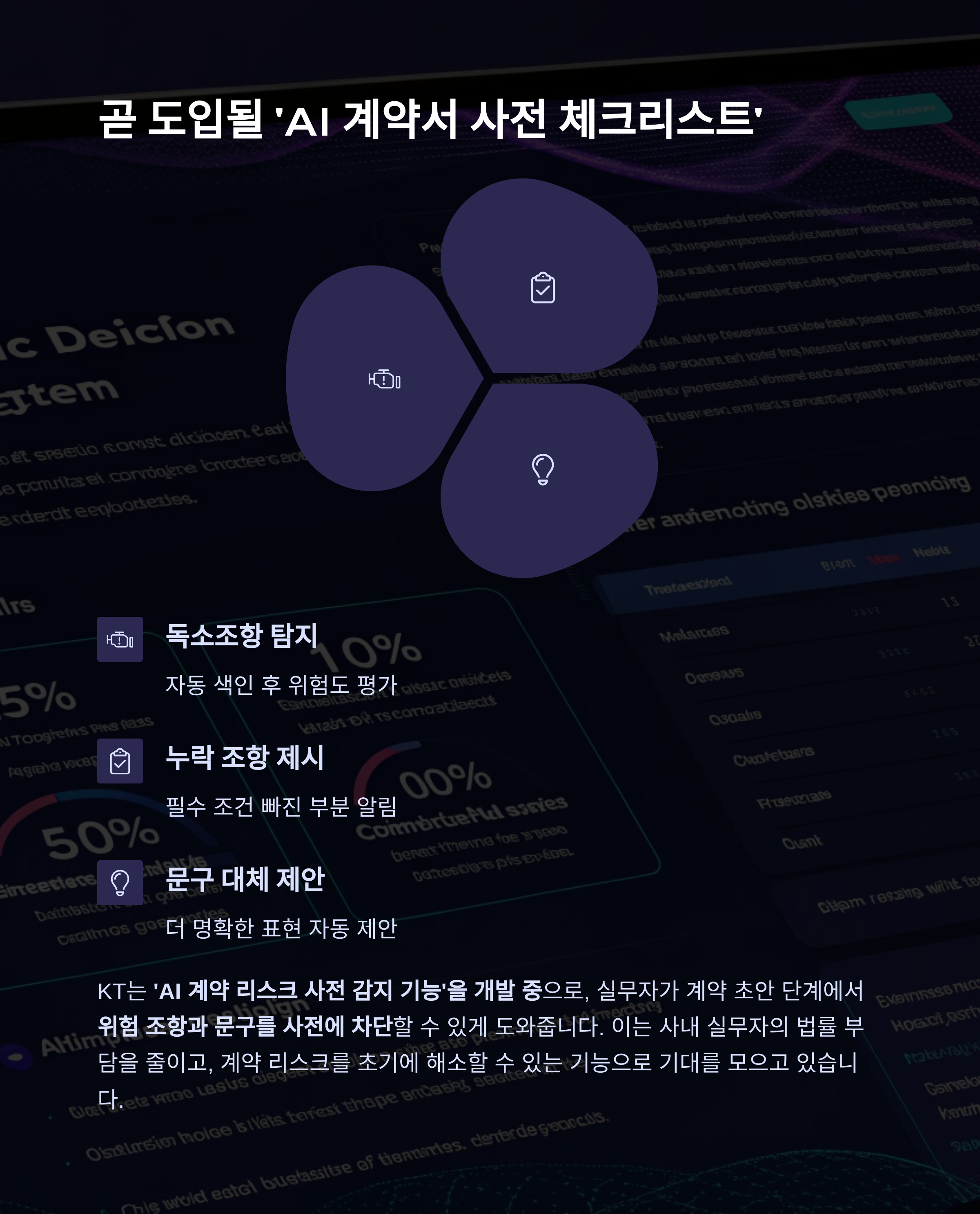 KT는 다음 단계로 ‘AI 계약 리스크 사전 감지 기능’을 개발 중입니다.