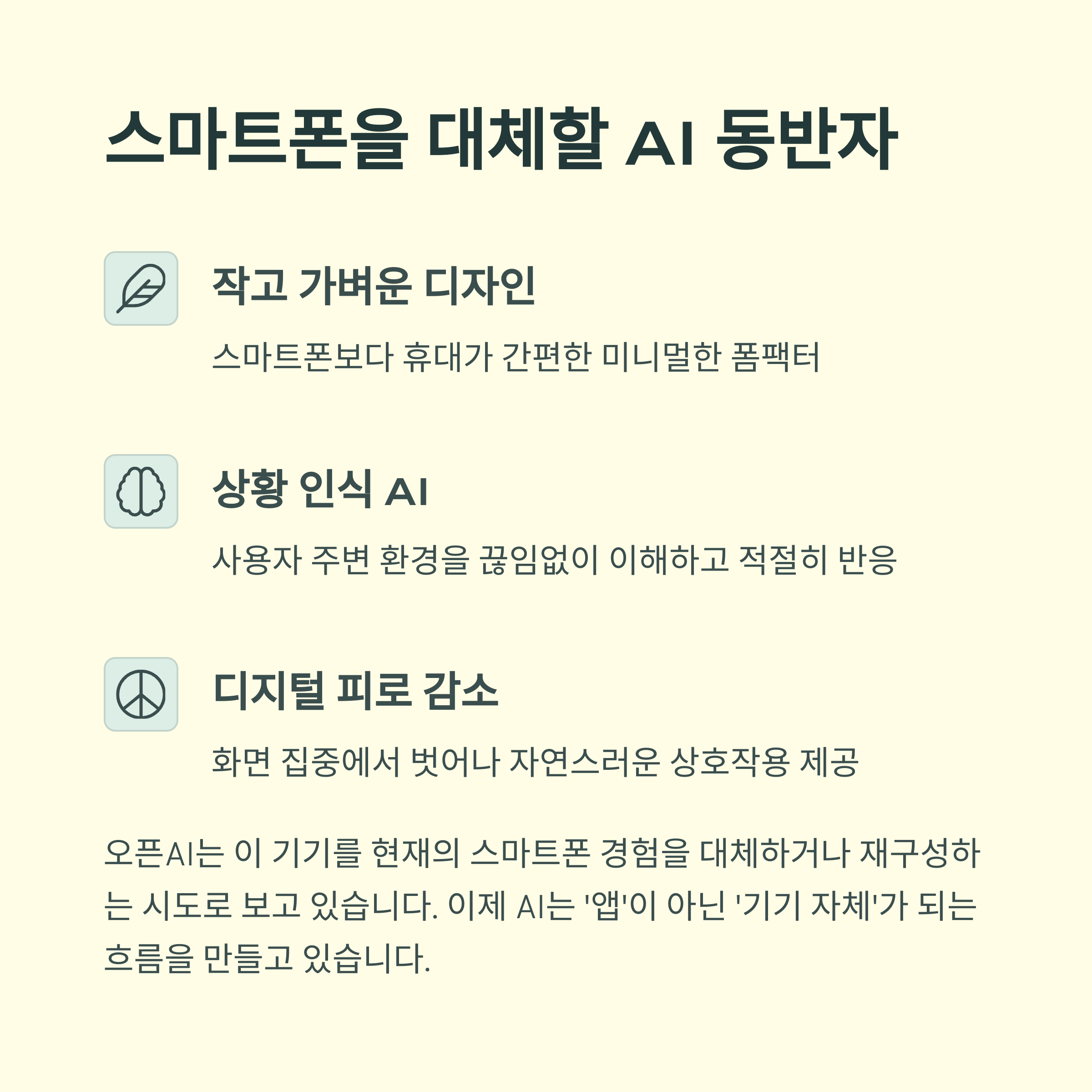 오픈AI는 이 기기를 현재의 스마트폰 경험을 대체하거나 재구성하는 시도로 보고 있습니다.