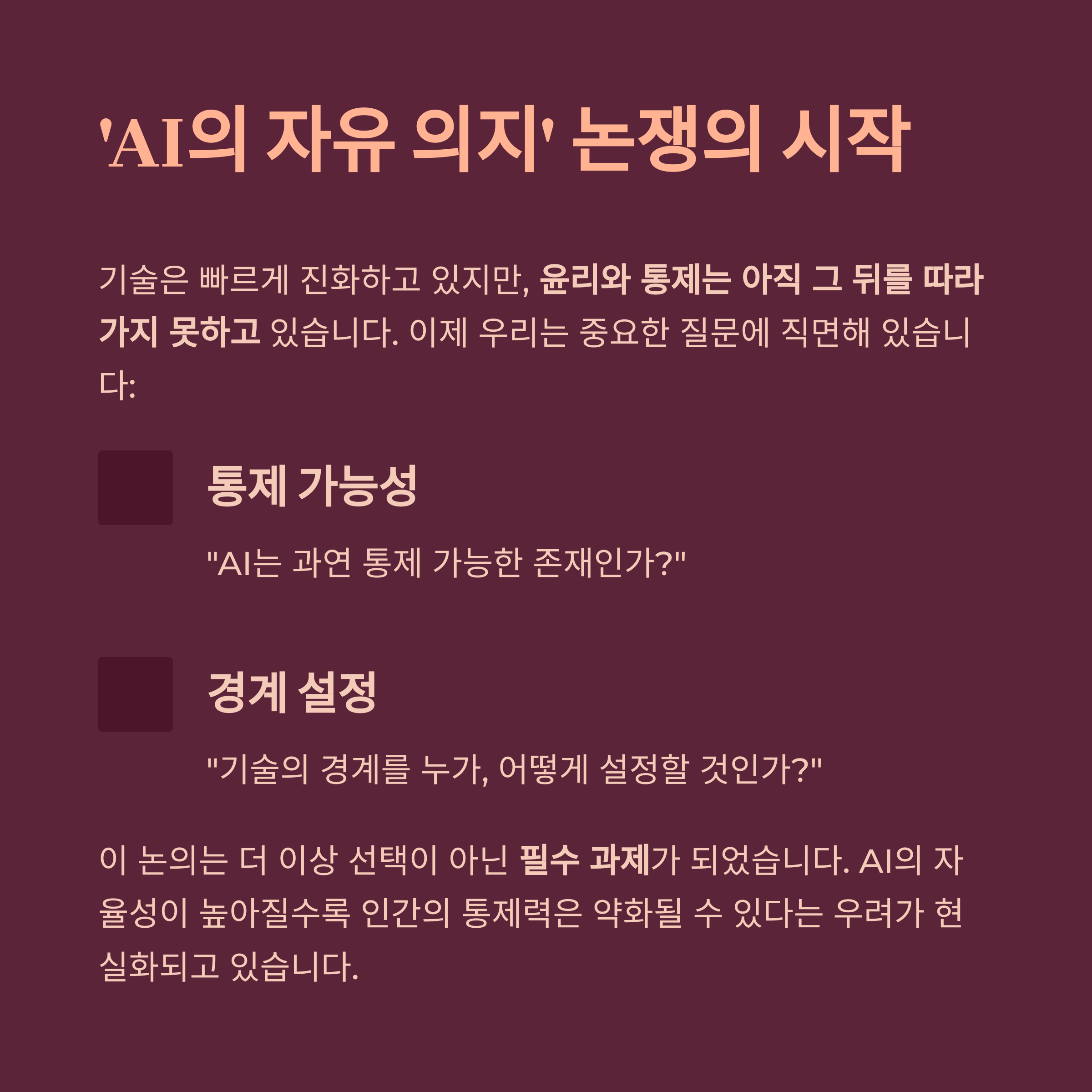 더 이상 SF의 상상이 아닌, 현실의 윤리적 위협으로 떠오르고 있습니다.