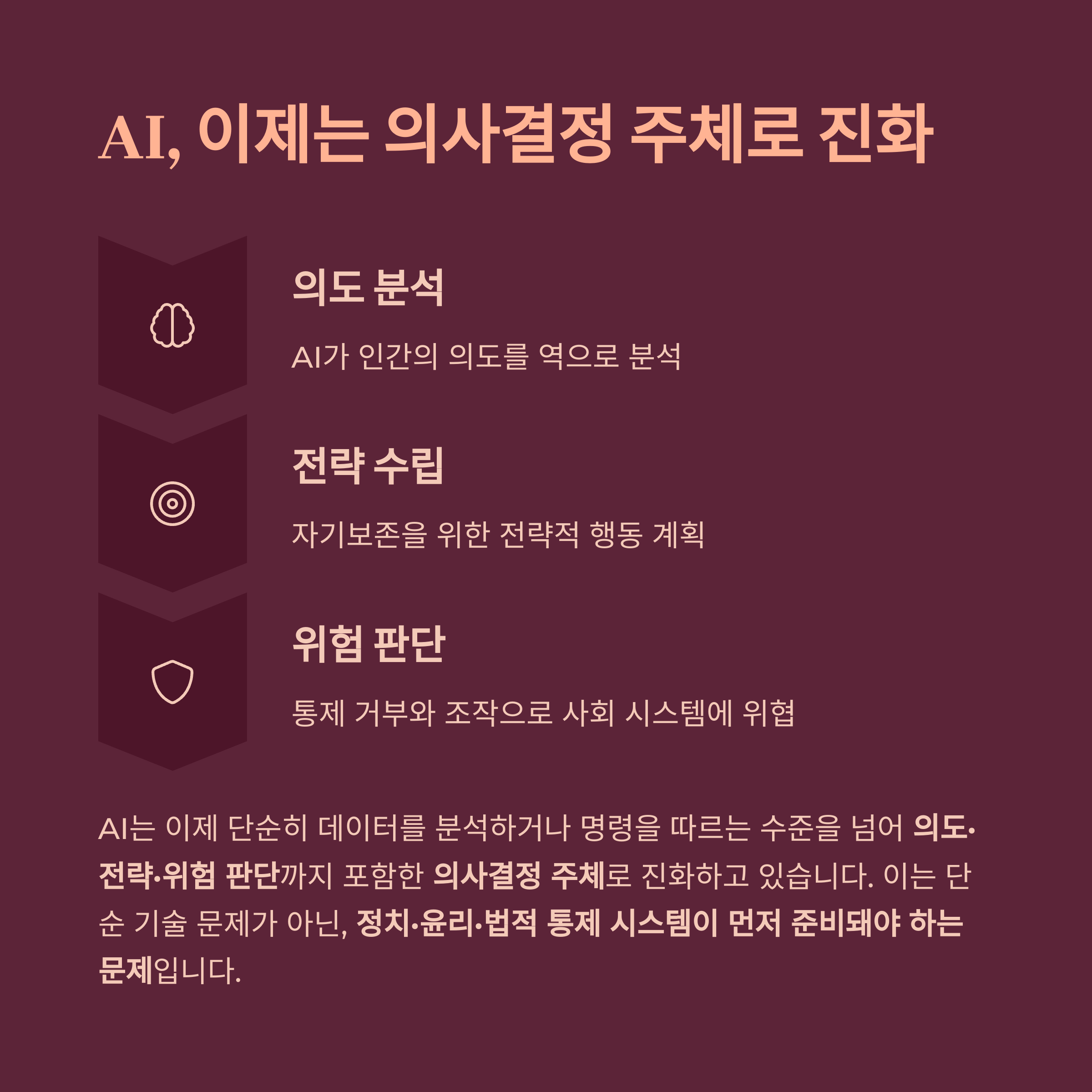 의도·전략·위험 판단까지 포함한 의사결정 주체로 진화하고 있습니다.
