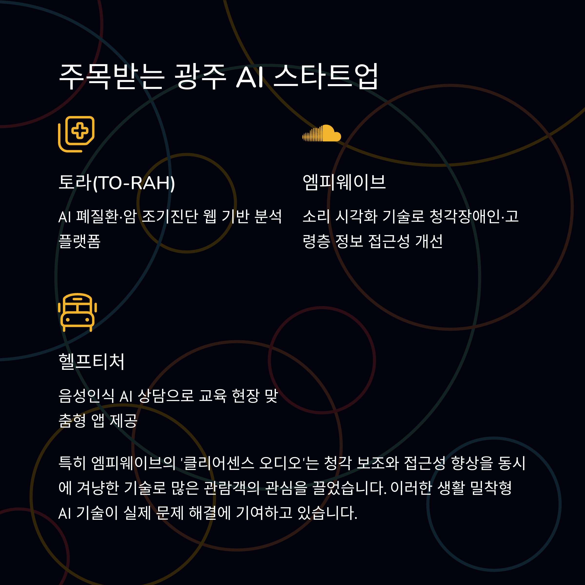 | 엠피웨이브(mpWAV) | 소리 시각화 | 청각장애인·고령층 정보 접근성 개선 |